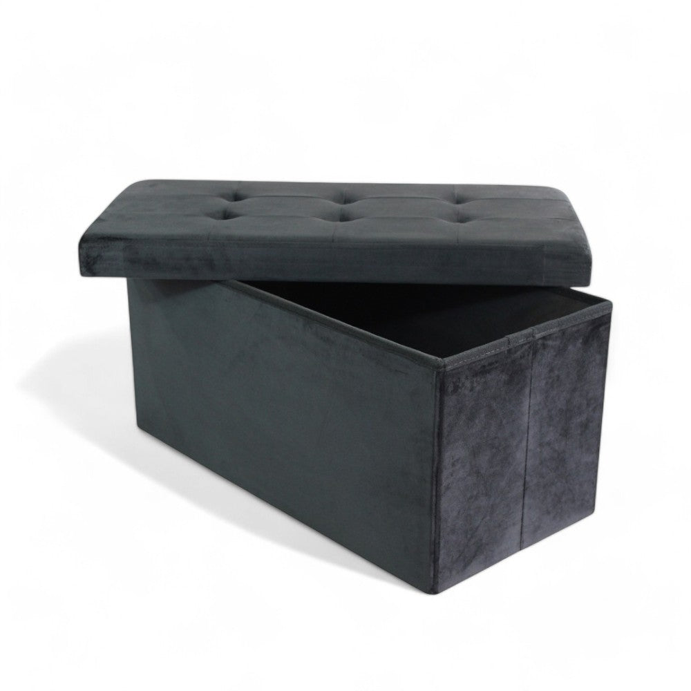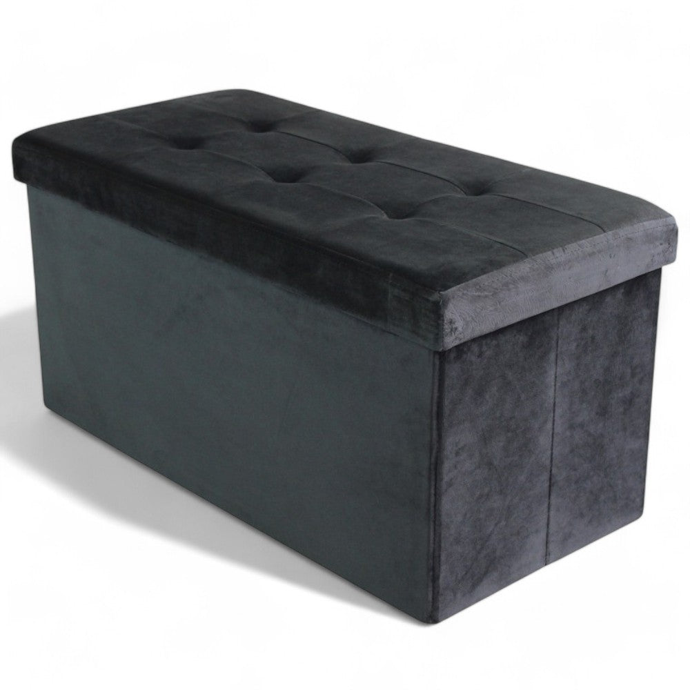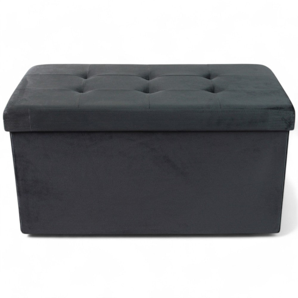 Pouf contenitore rettangolare in velluto nero 76x38xH38