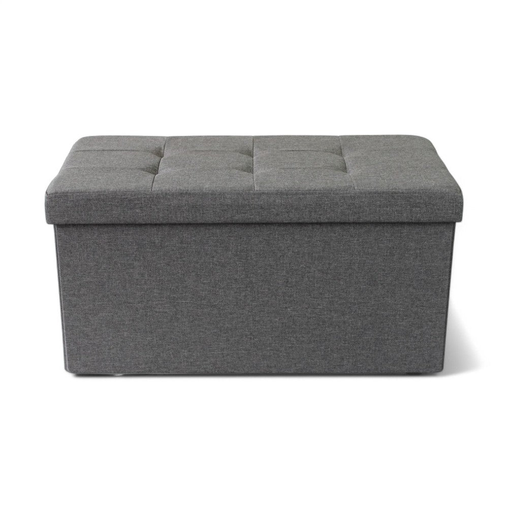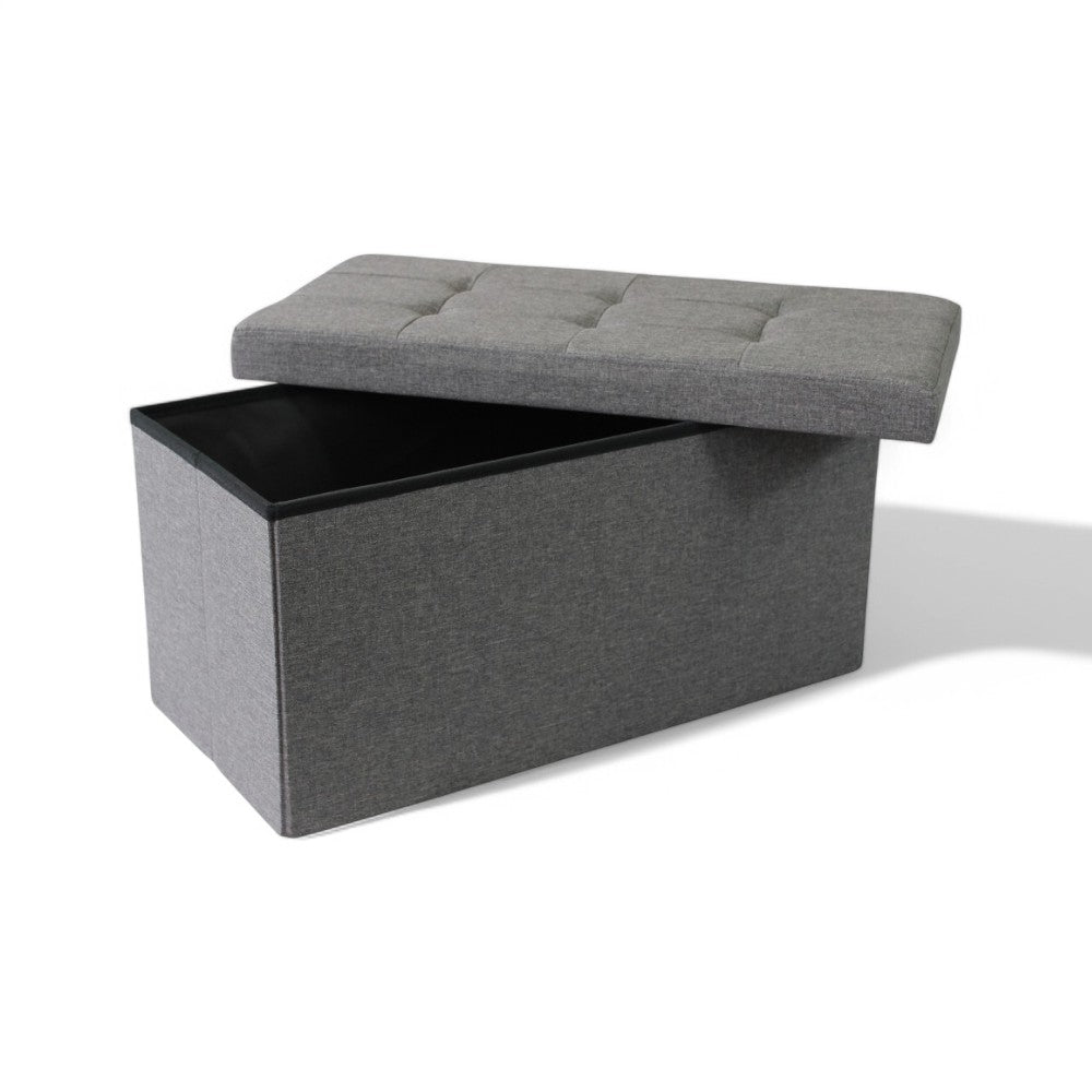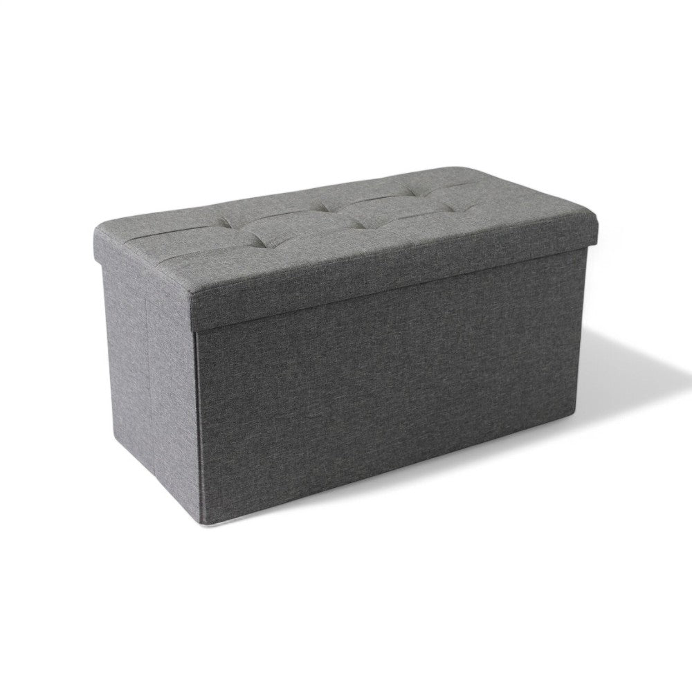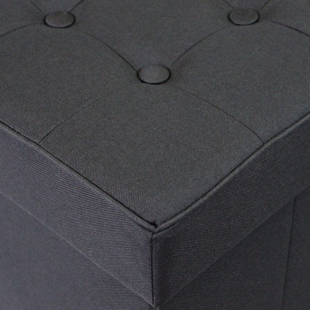 Pouf contenitore rettangolare in tessuto grigio scuro con dimensioni 76x38xH38 cm