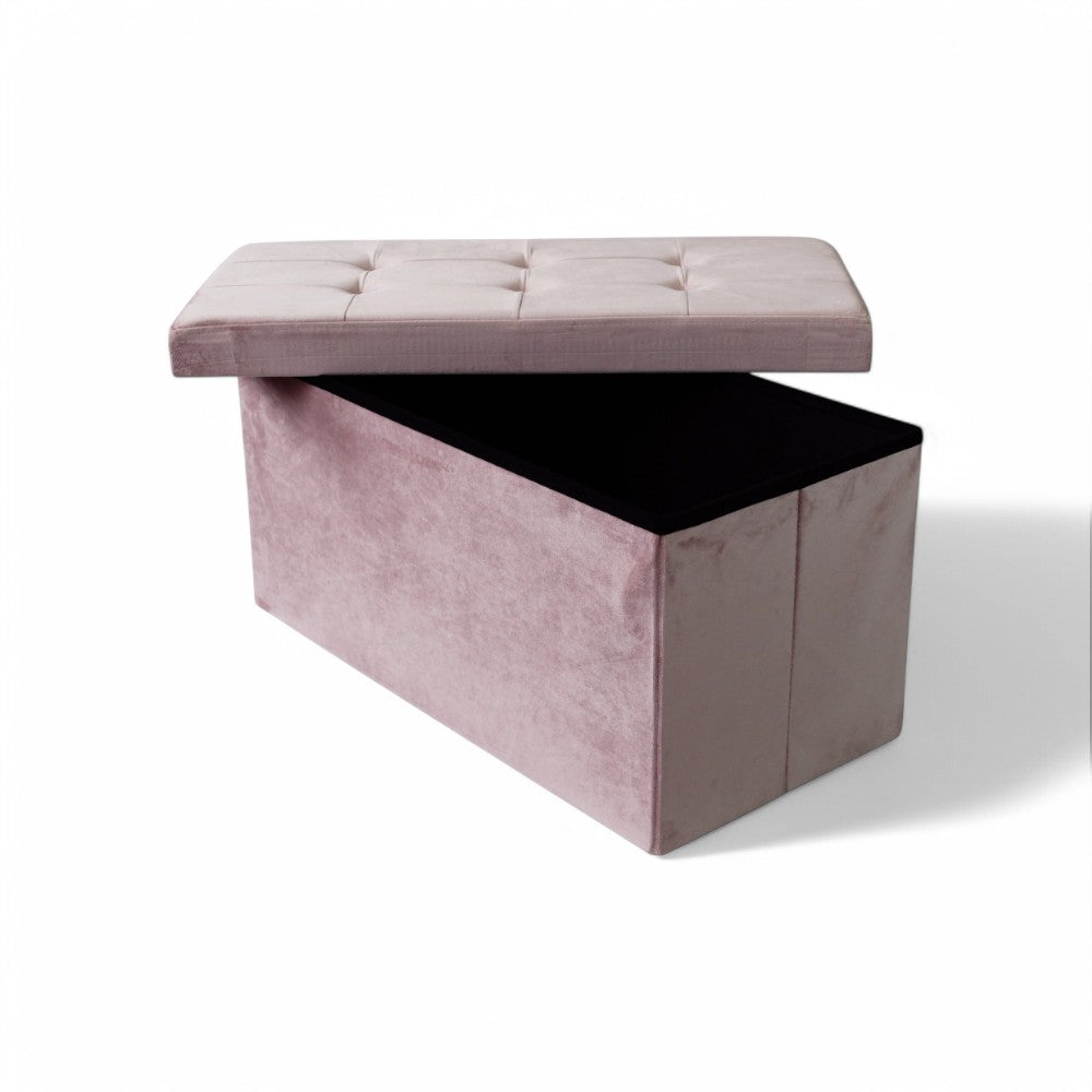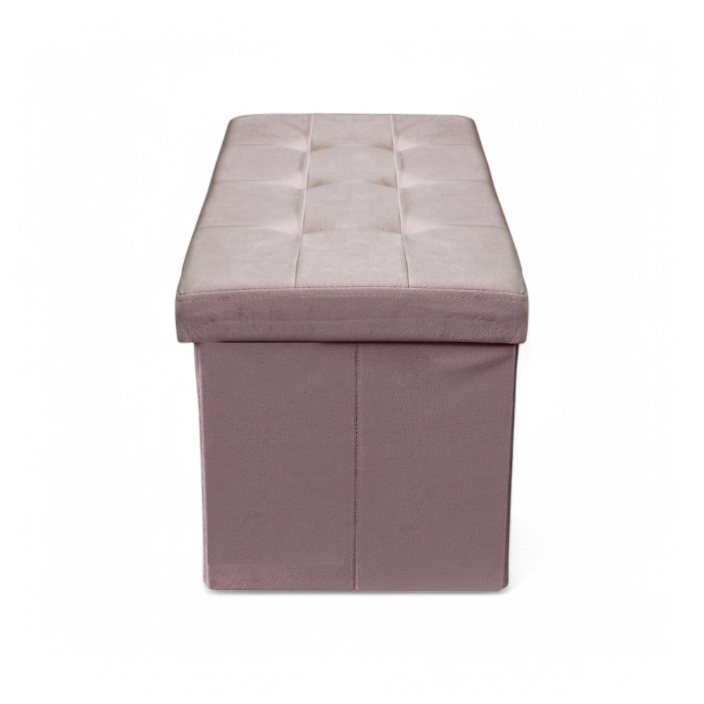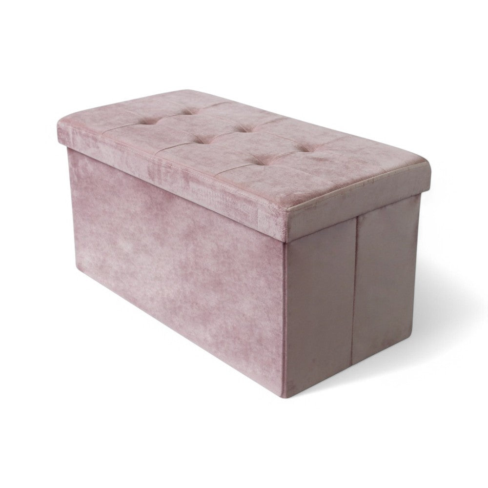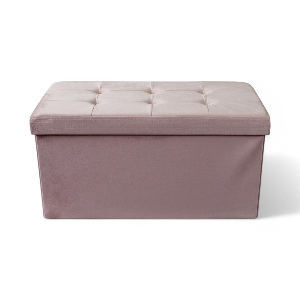 Pouf contenitore rettangolare in velluto rosa con coperchio imbottito 76x38xH38 cm