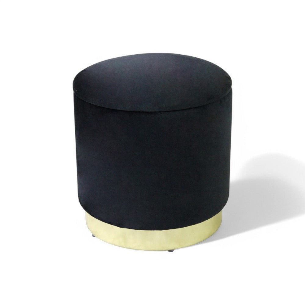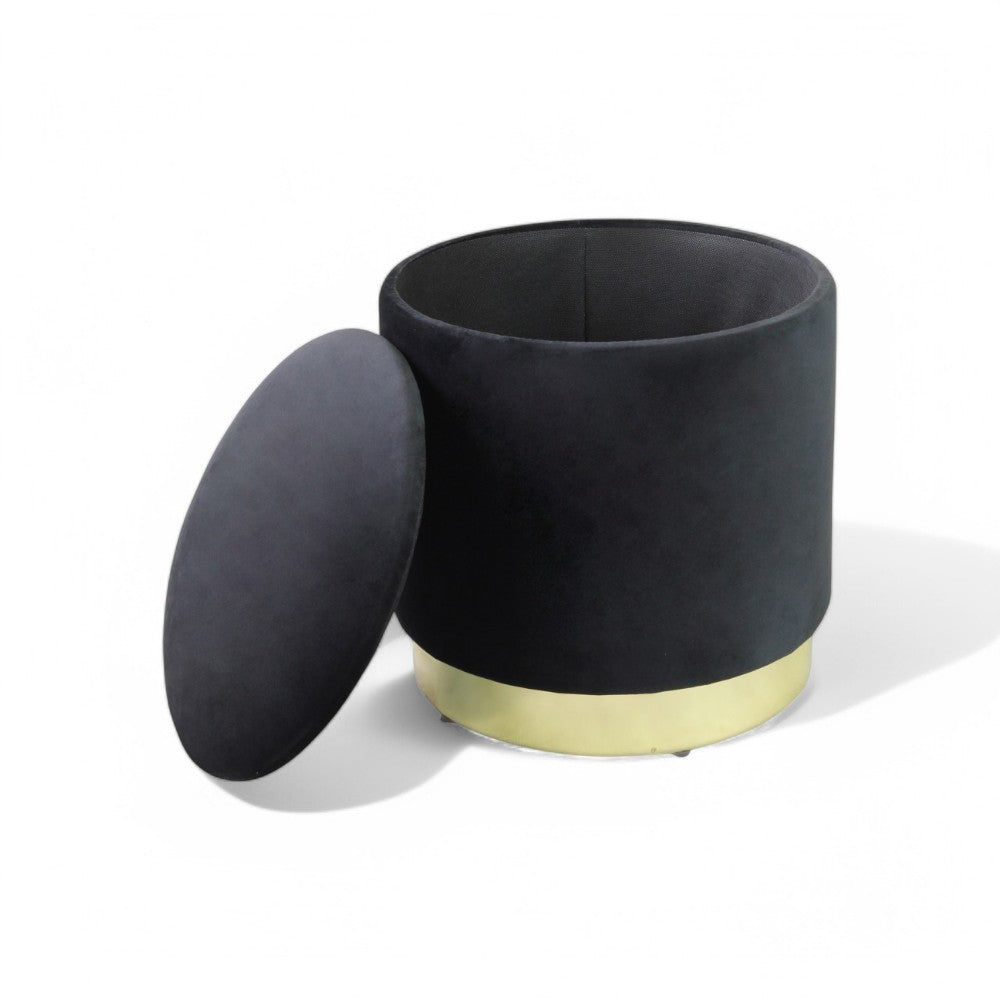 Pouf contenitore rotondo in velluto nero con diametro 37xH40 cm