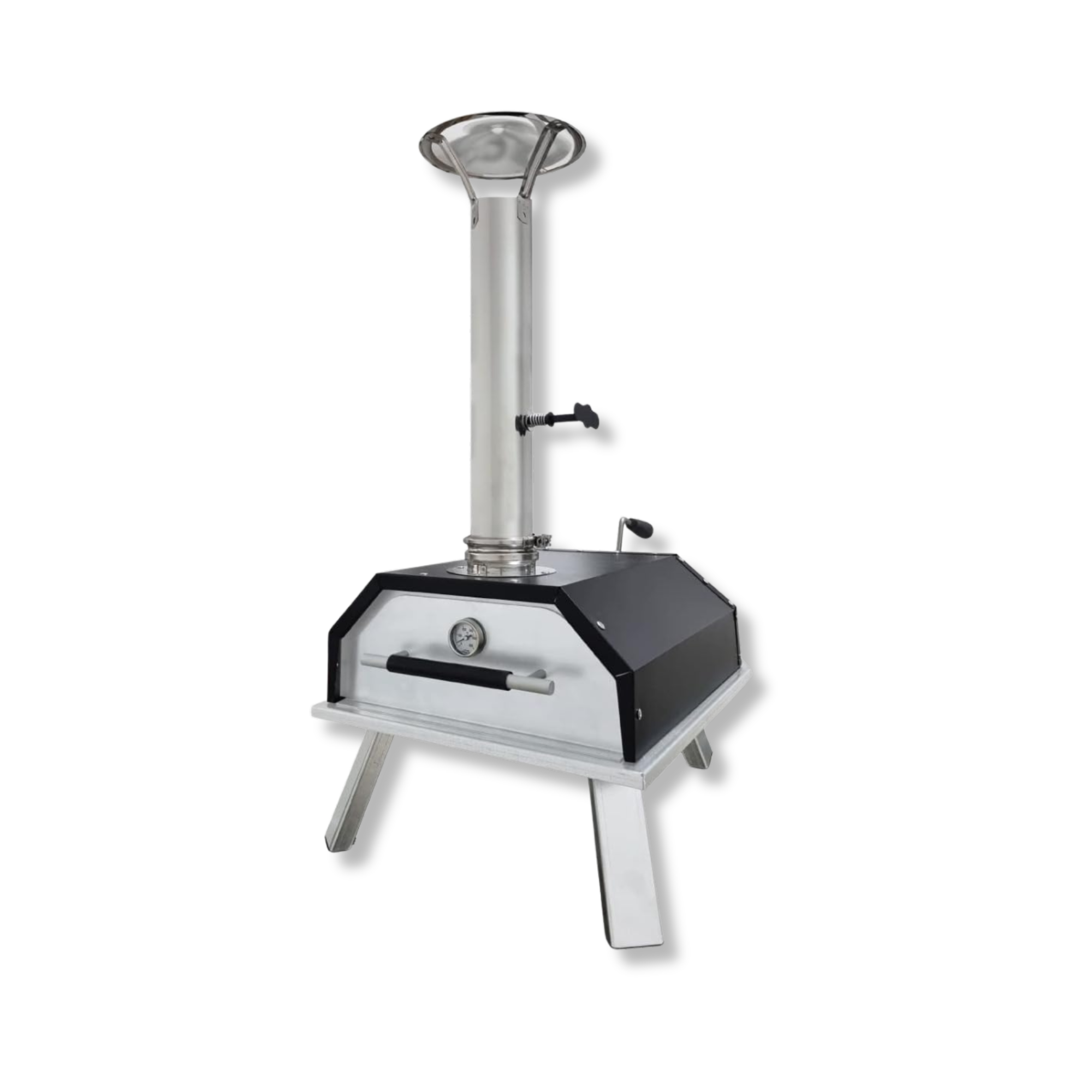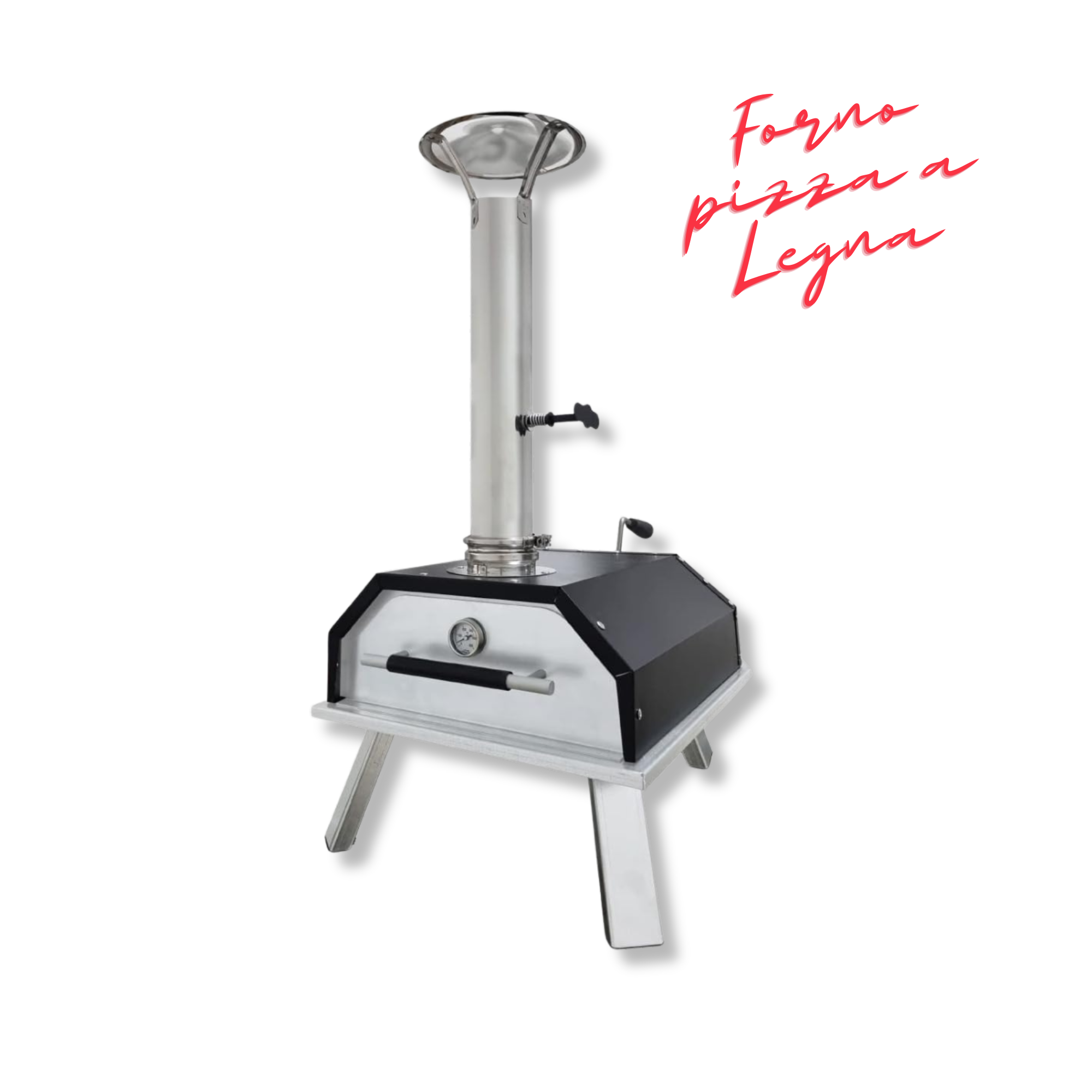 Forno per pizza portatile a legna in acciaio colore alluminio e nero