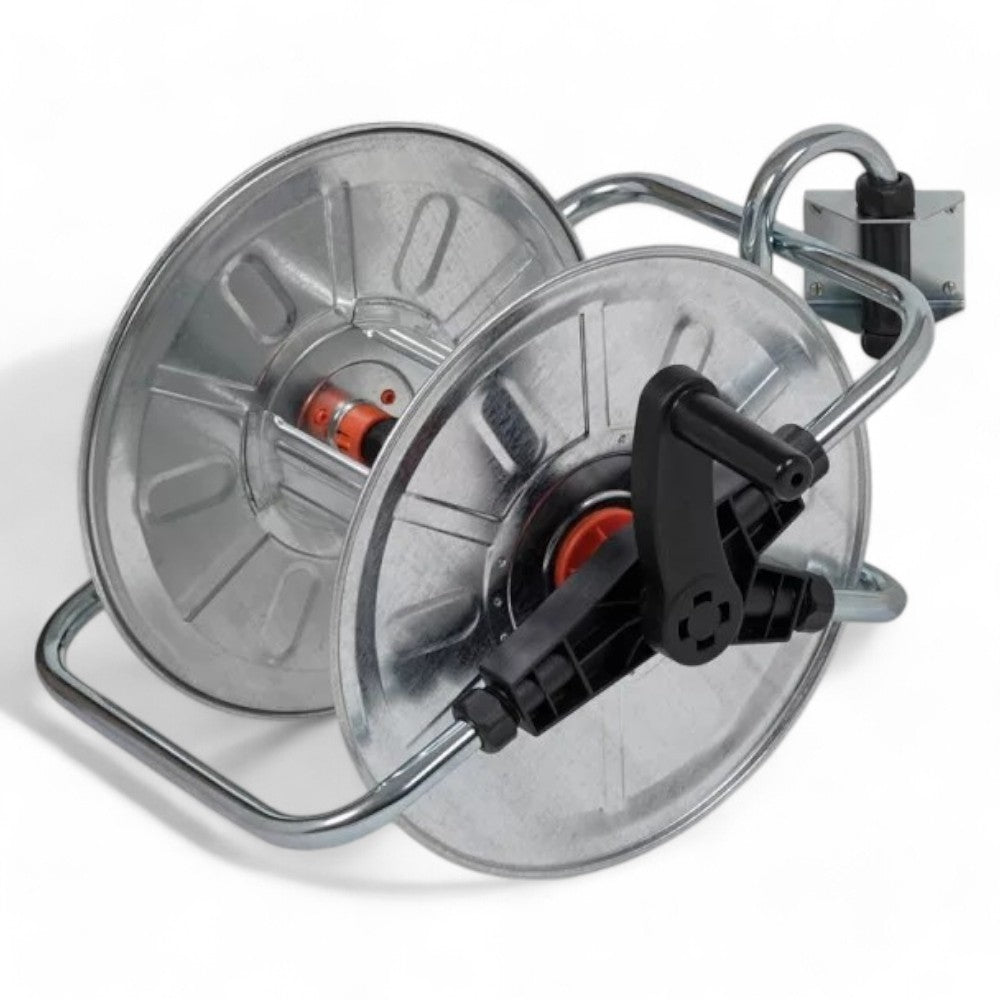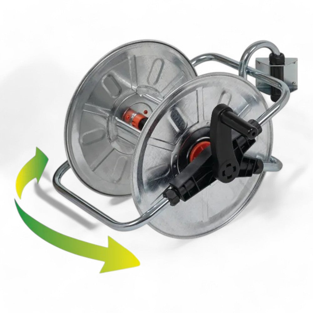 Avvolgitubo murale girevole in acciaio zincato fino a 50 metri con raccordo portagomm...