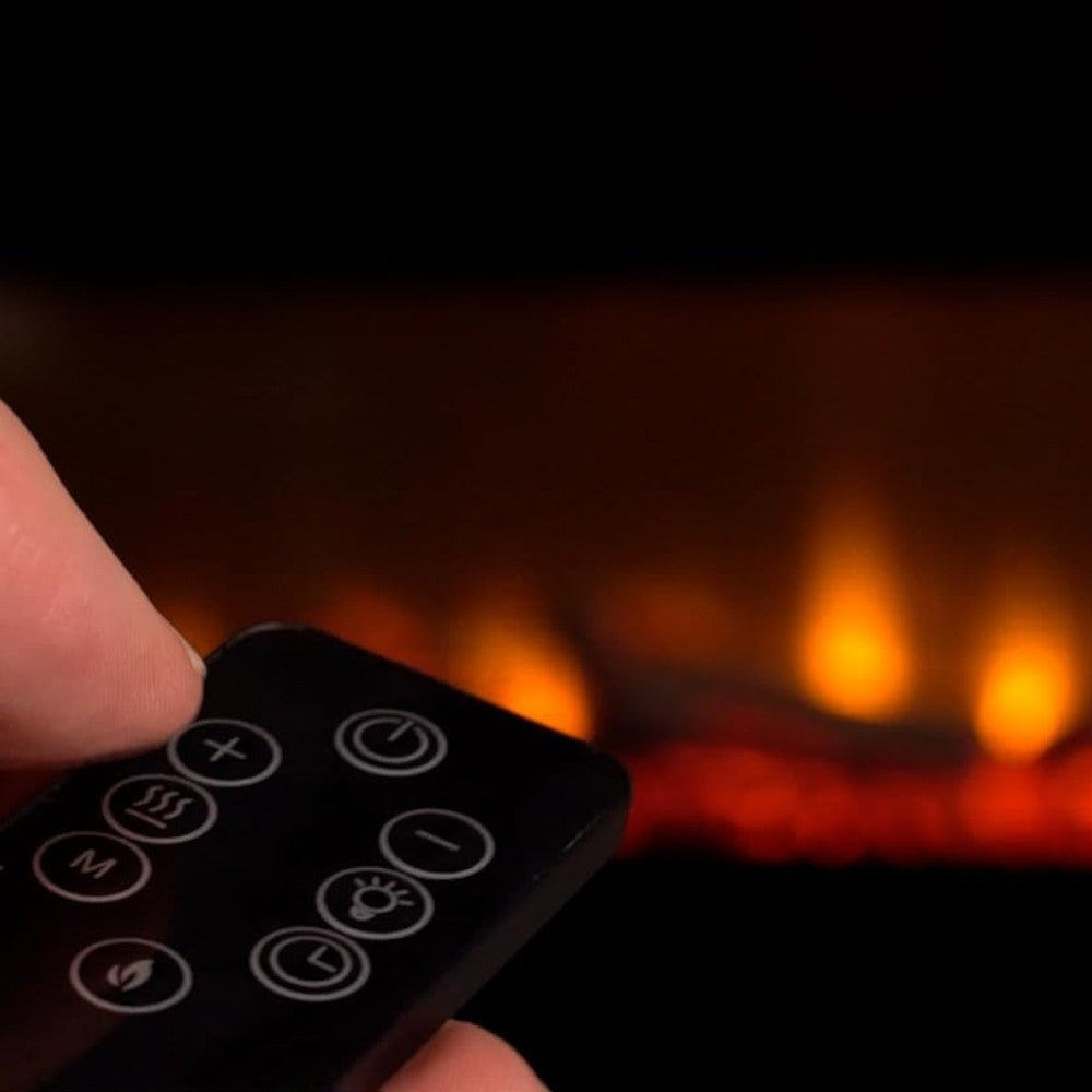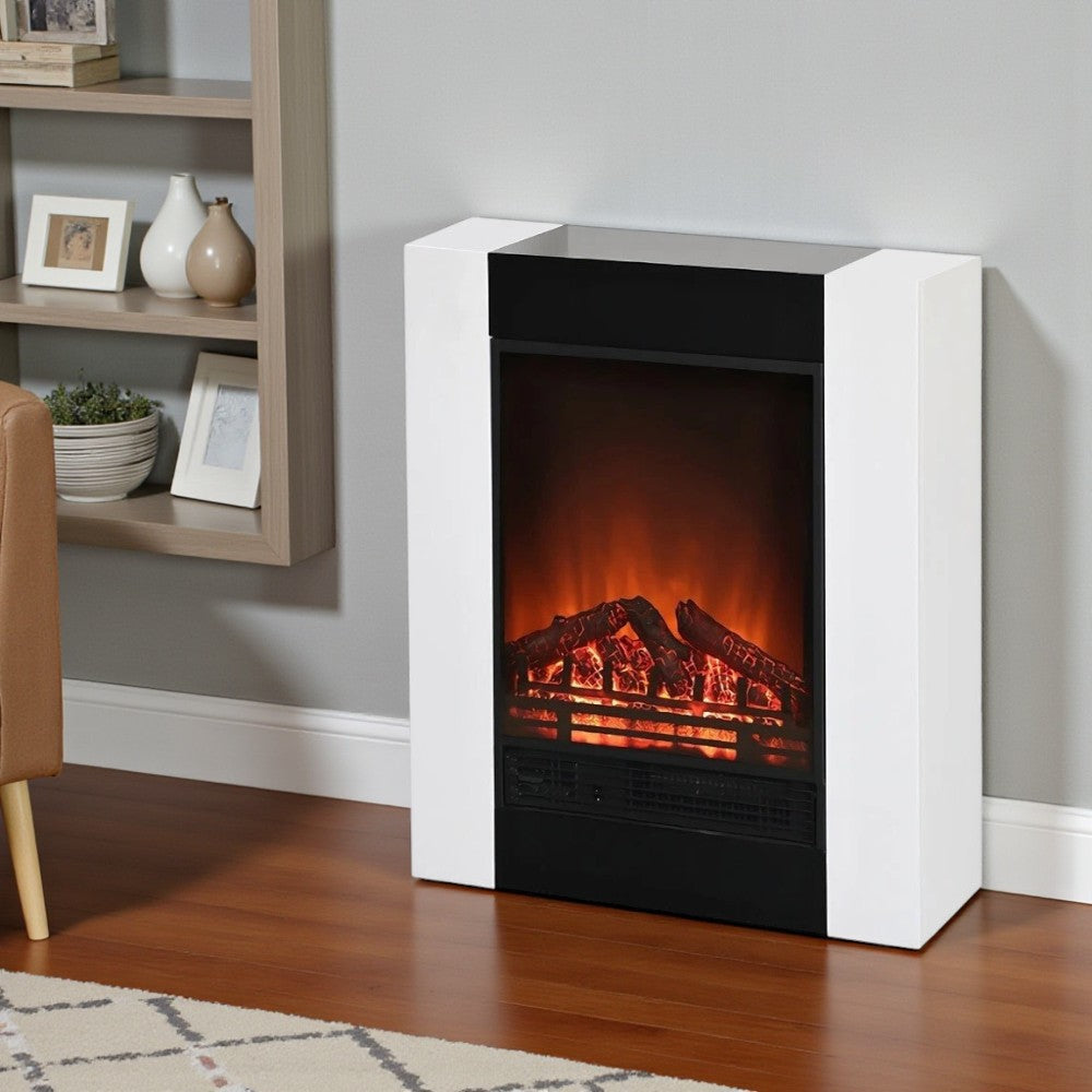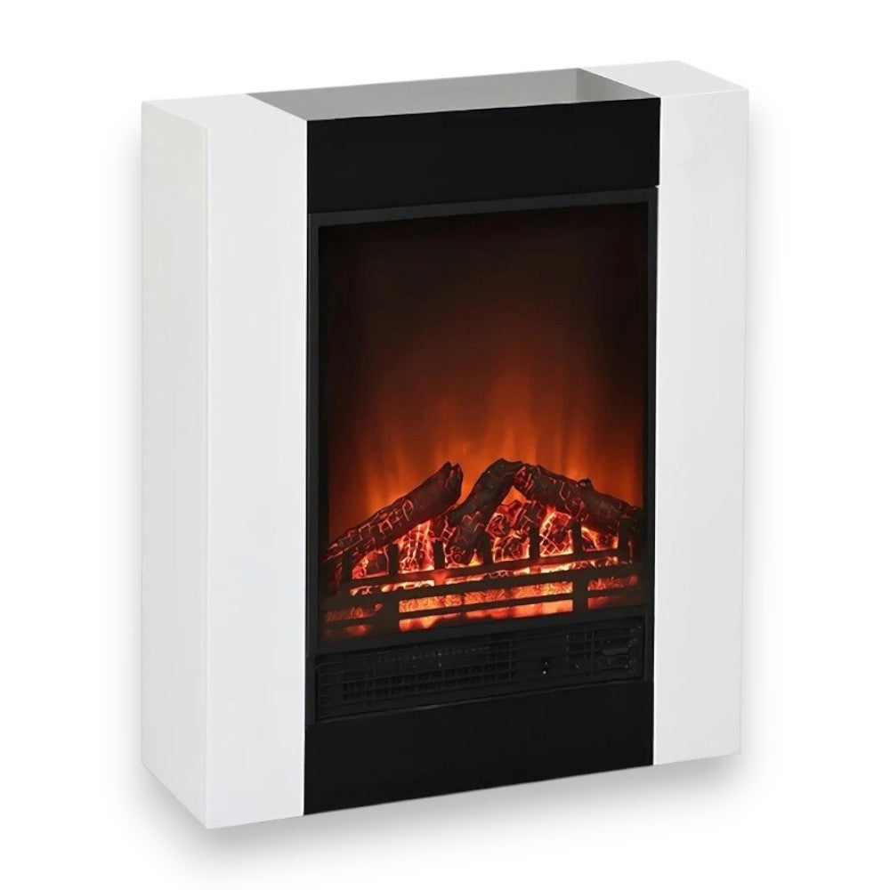 Caminetto elettrico 750-1500 Watt in acciaio e legno bianco con effetto fiamma realis...