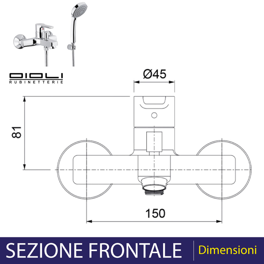 Miscelatore e doccetta per vasca da bagno cromato ATLANTIK40