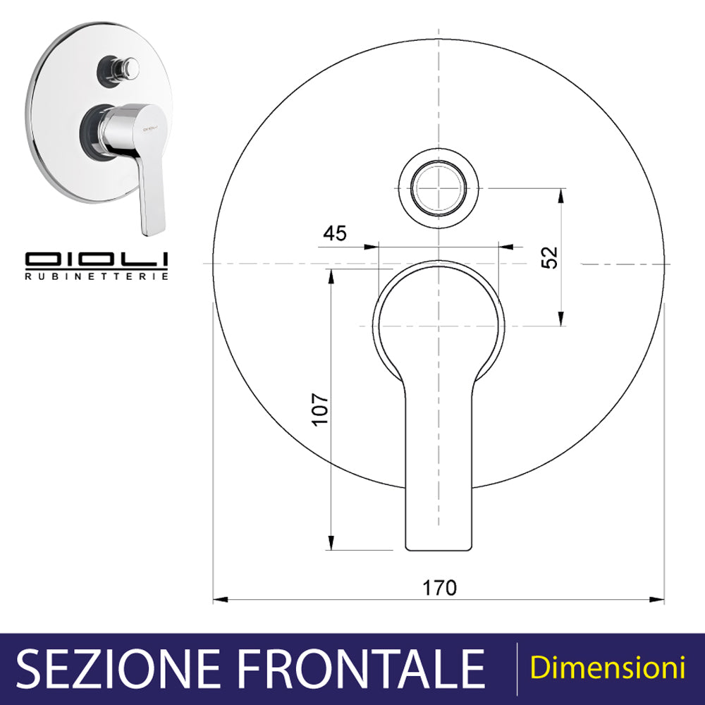 Miscelatore doccia a incasso in acciaio cromato con deviatore e diametro 17 cm