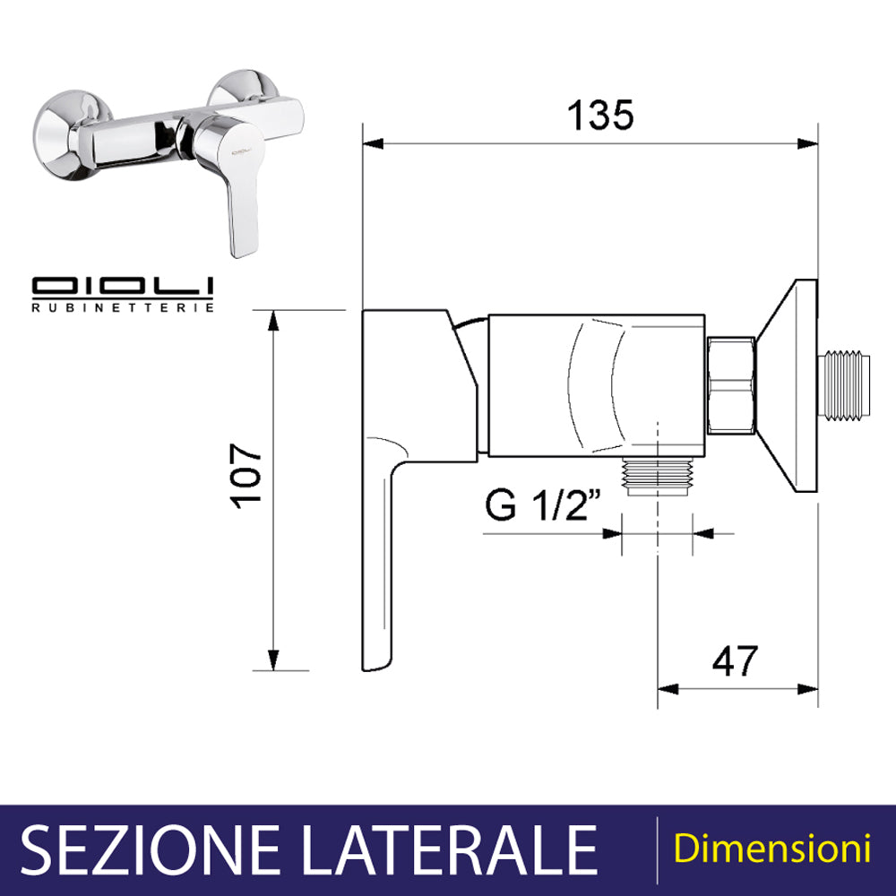 Miscelatore doccia a Incasso monoleva in ottone cromato New Detroit