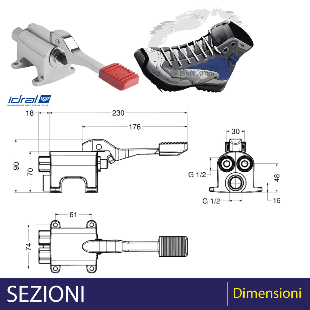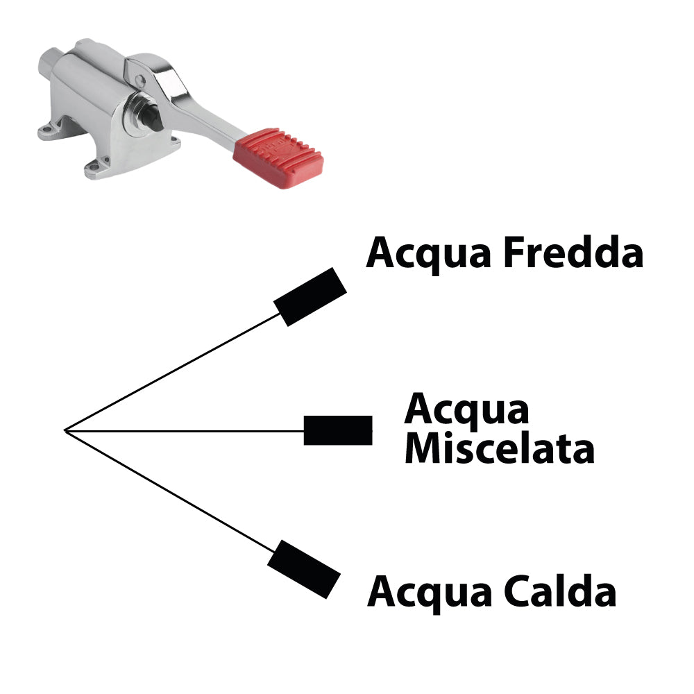 Rubinetto a pedale a pavimento 2 vie con corpo in ottone cromato