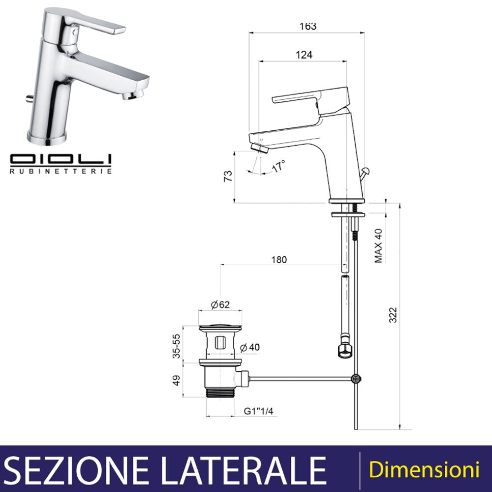 Miscelatore lavabo cromo con levetta scarico 1" 1/4 Stick