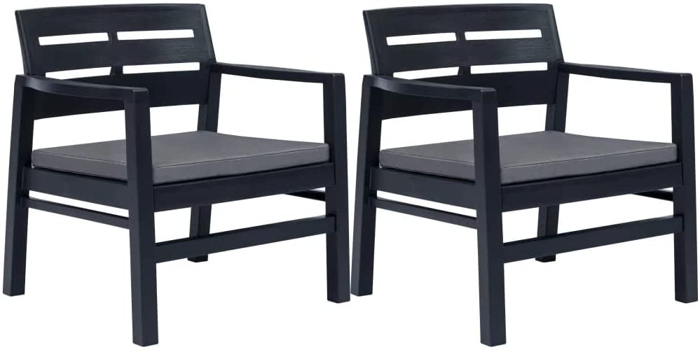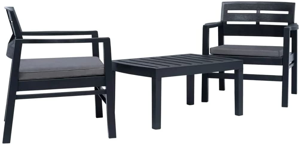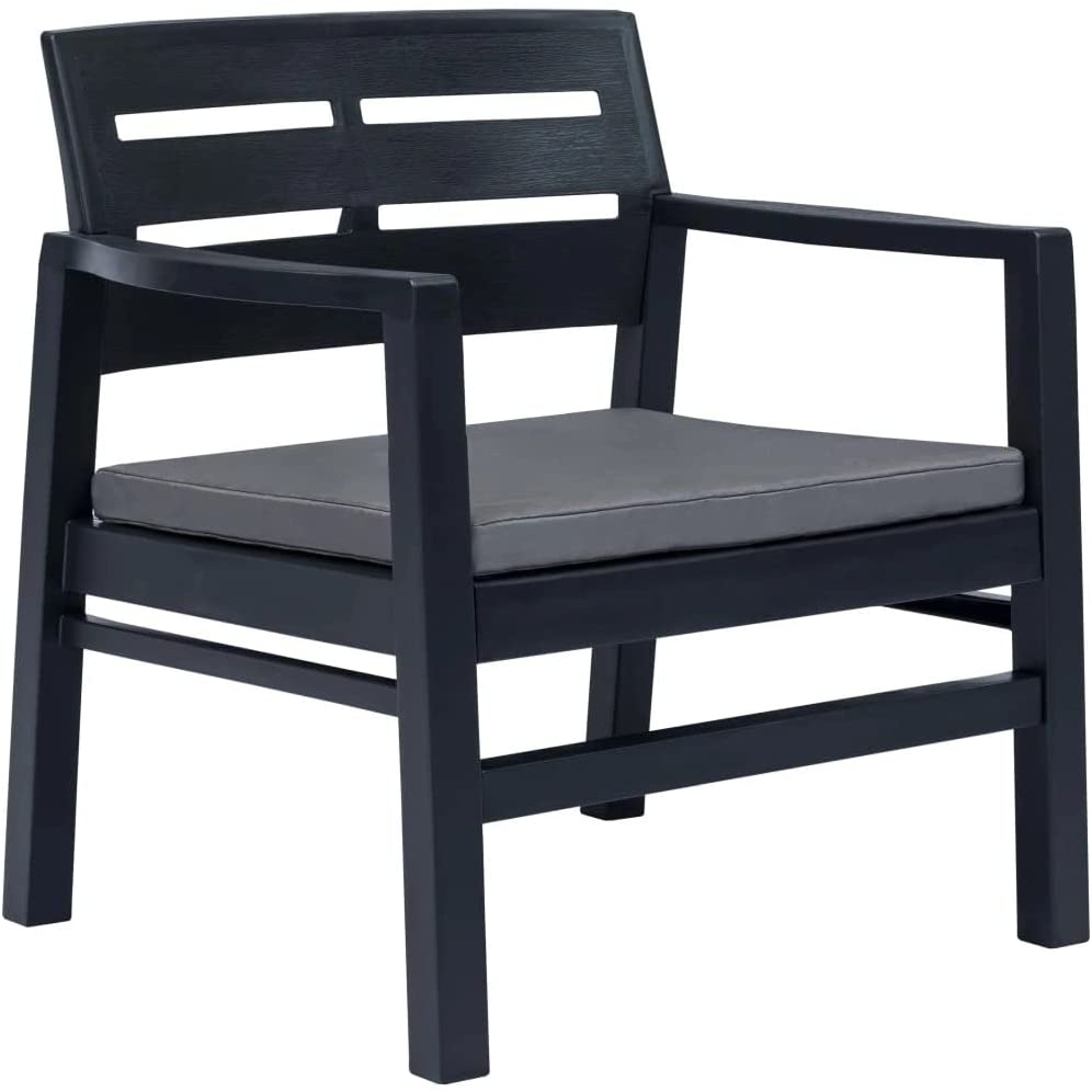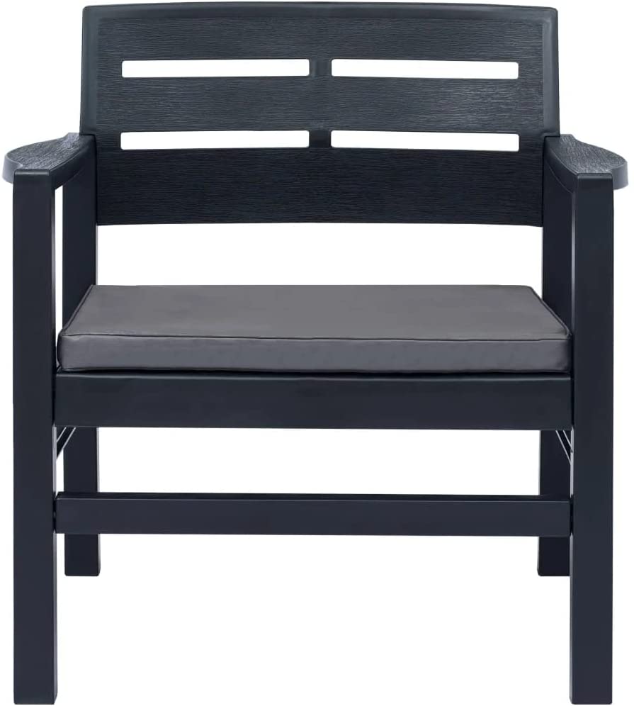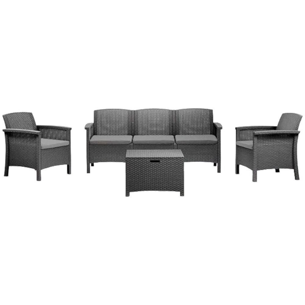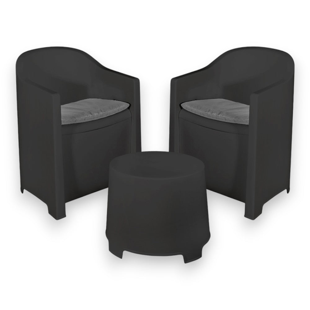 Salotto da esterno antracite 2 posti in resina poltrone con cuscini e tavolino Lombok