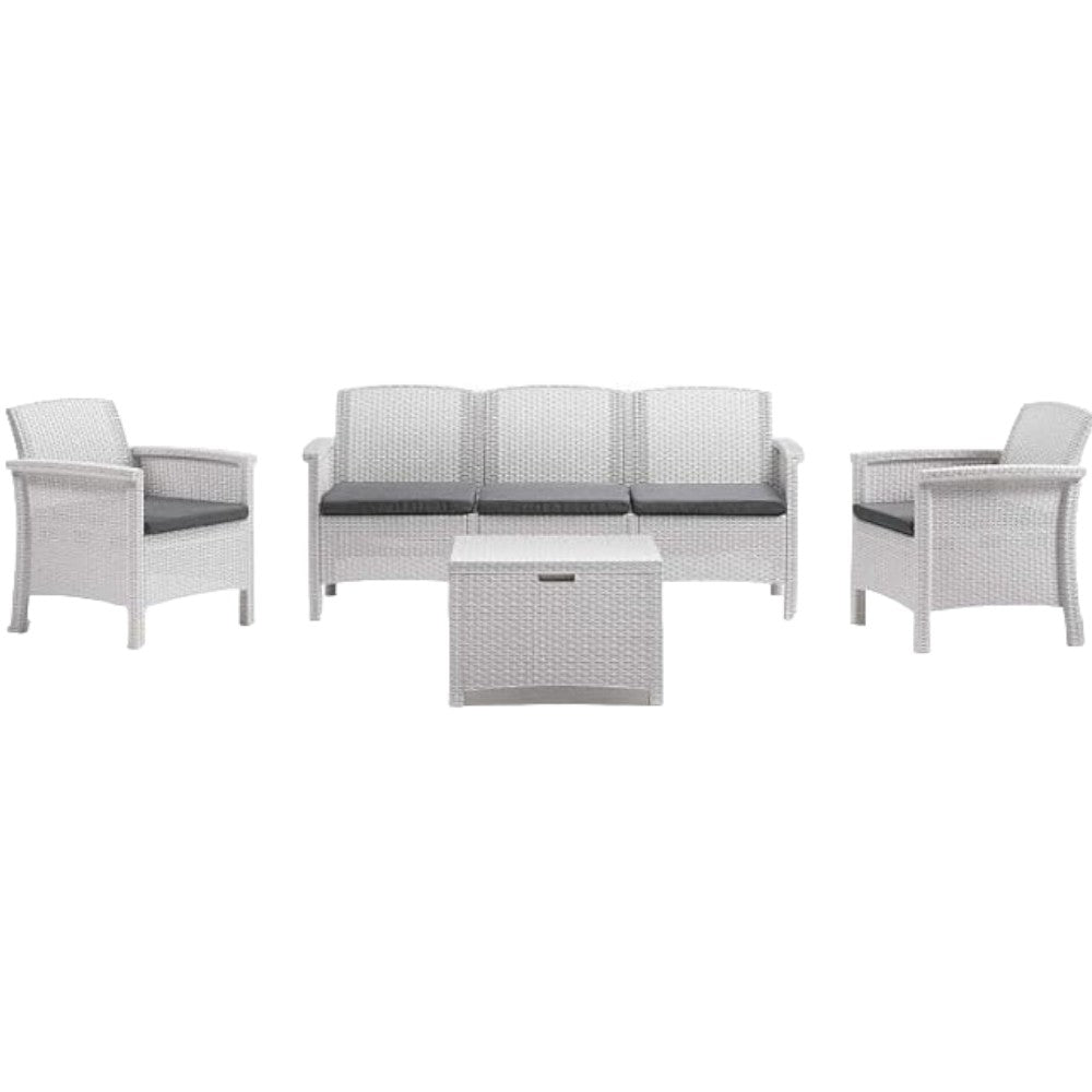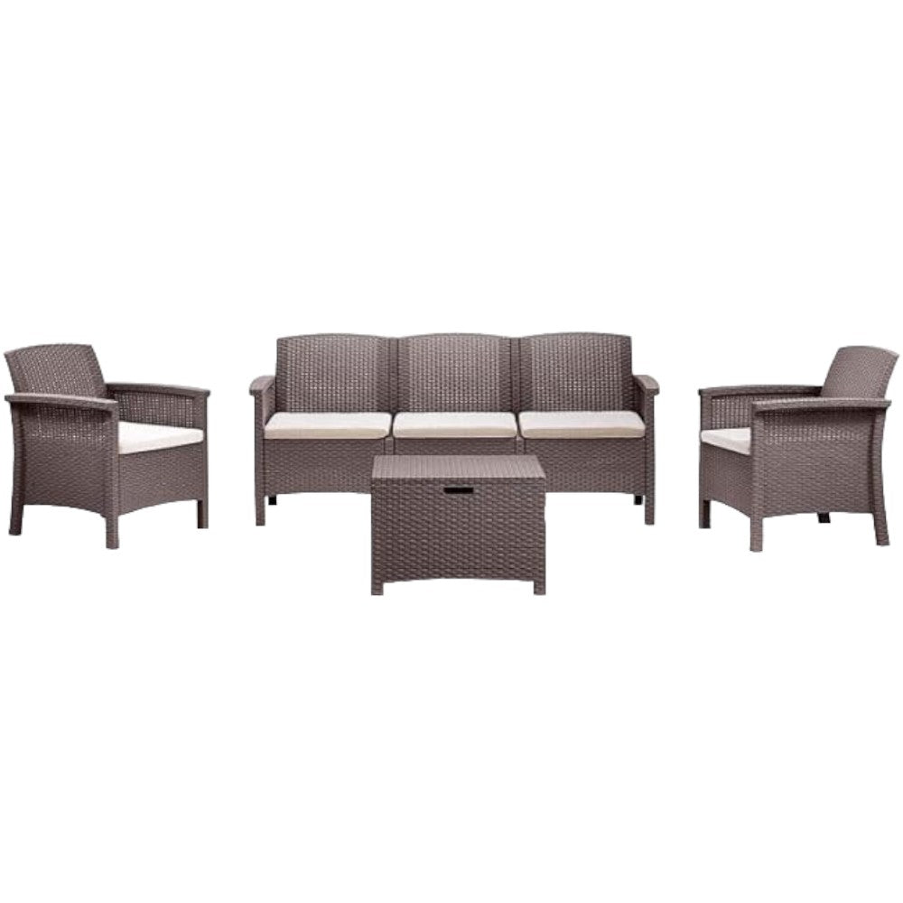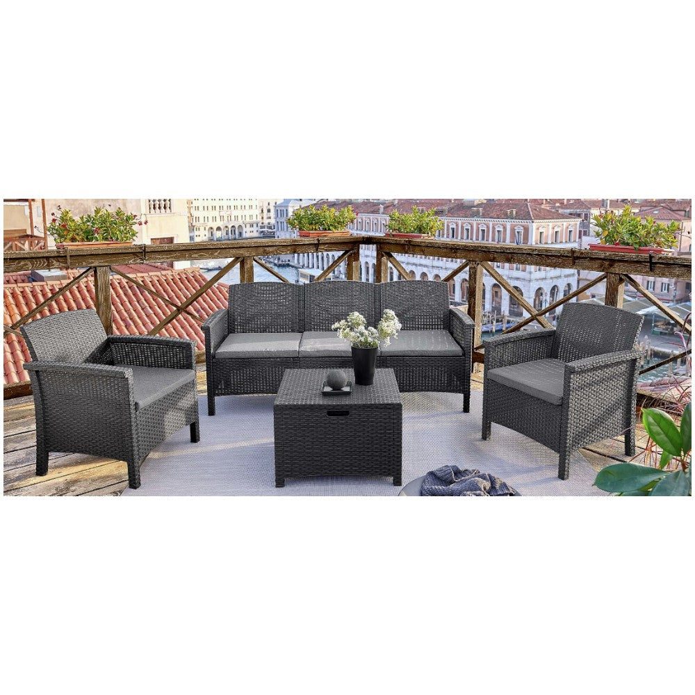 Salotto da giardino 4 posti in wicker stampato con cuscini e tavolino contenitore Friuli