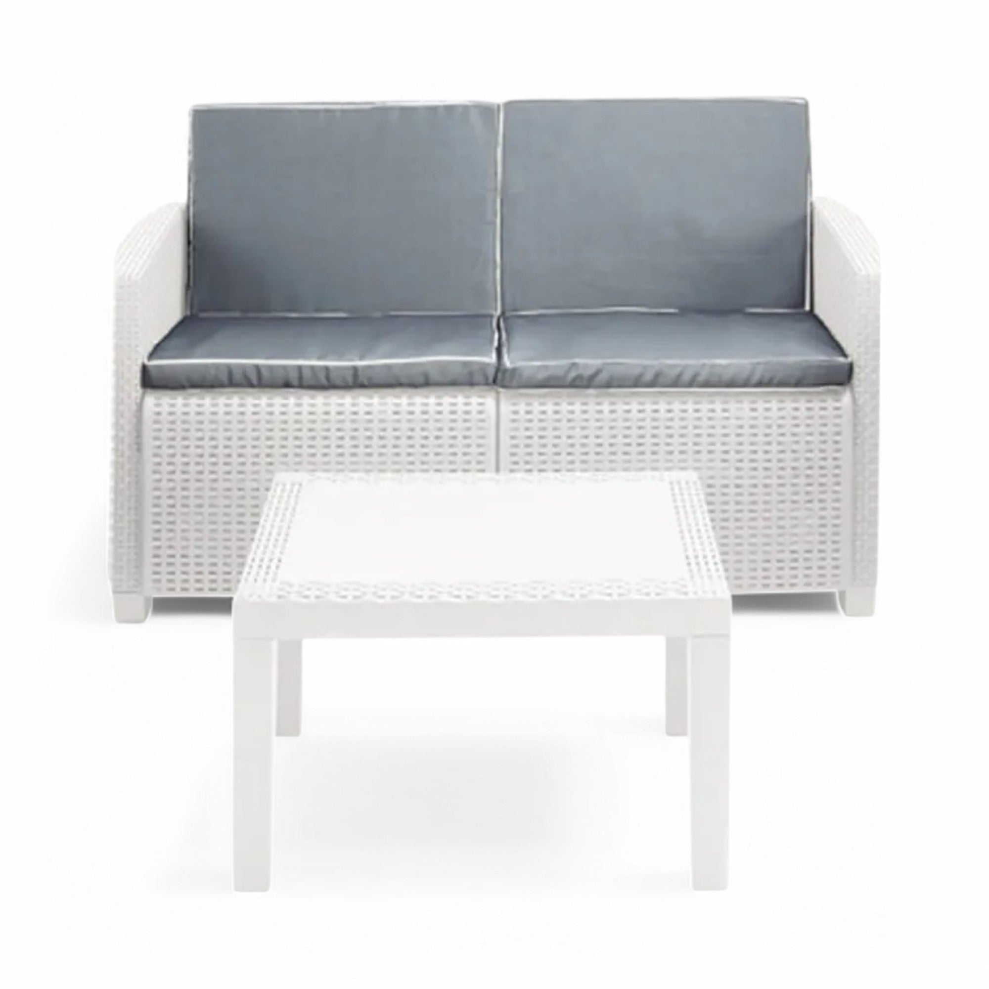 Salotto 2 posti da giardino in resina resistente effetto rattan con tavolino Akita