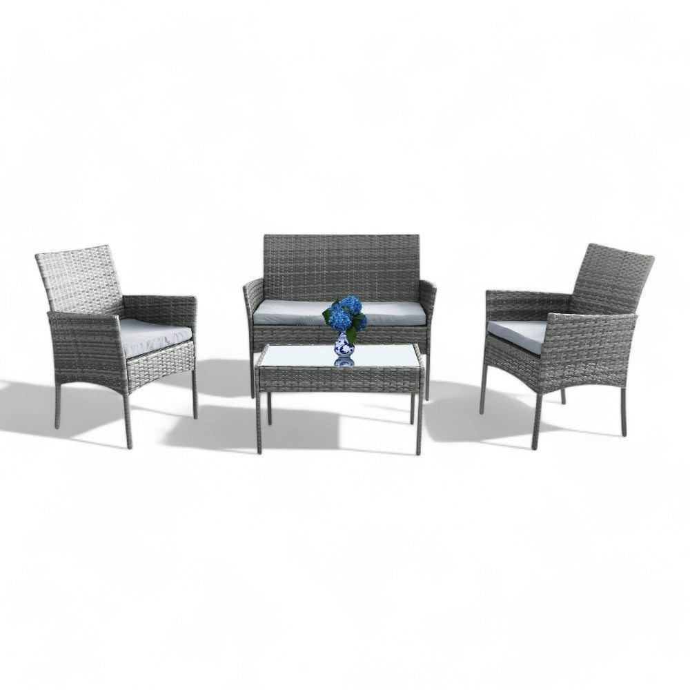 Salotto da esterno giardino 4 posti in resina e wicker con tavolino e cuscini Creta