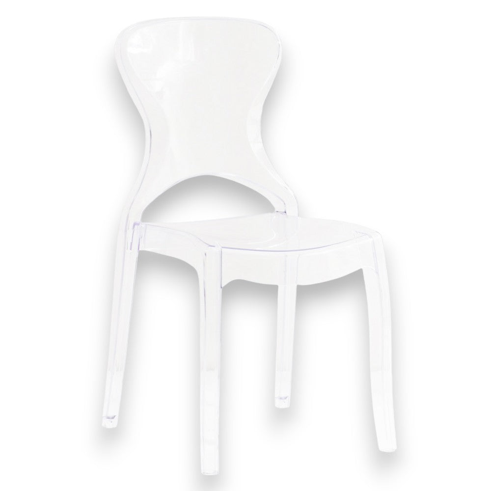 Sedia da pranzo trasparente in policarbonato con struttura resistente e design modern...