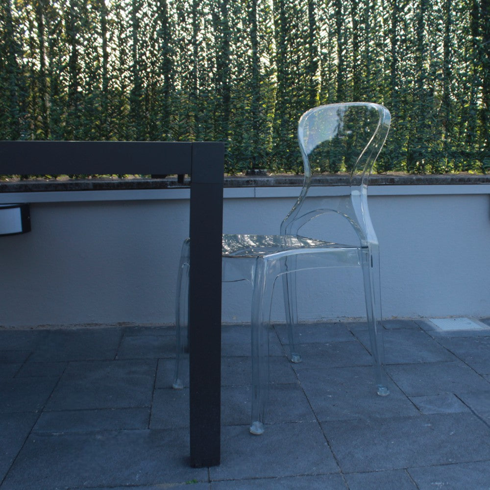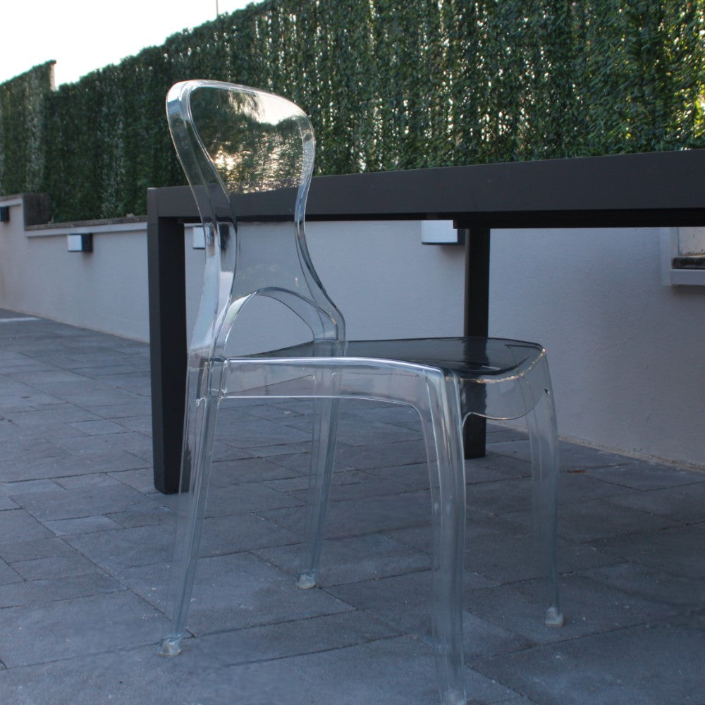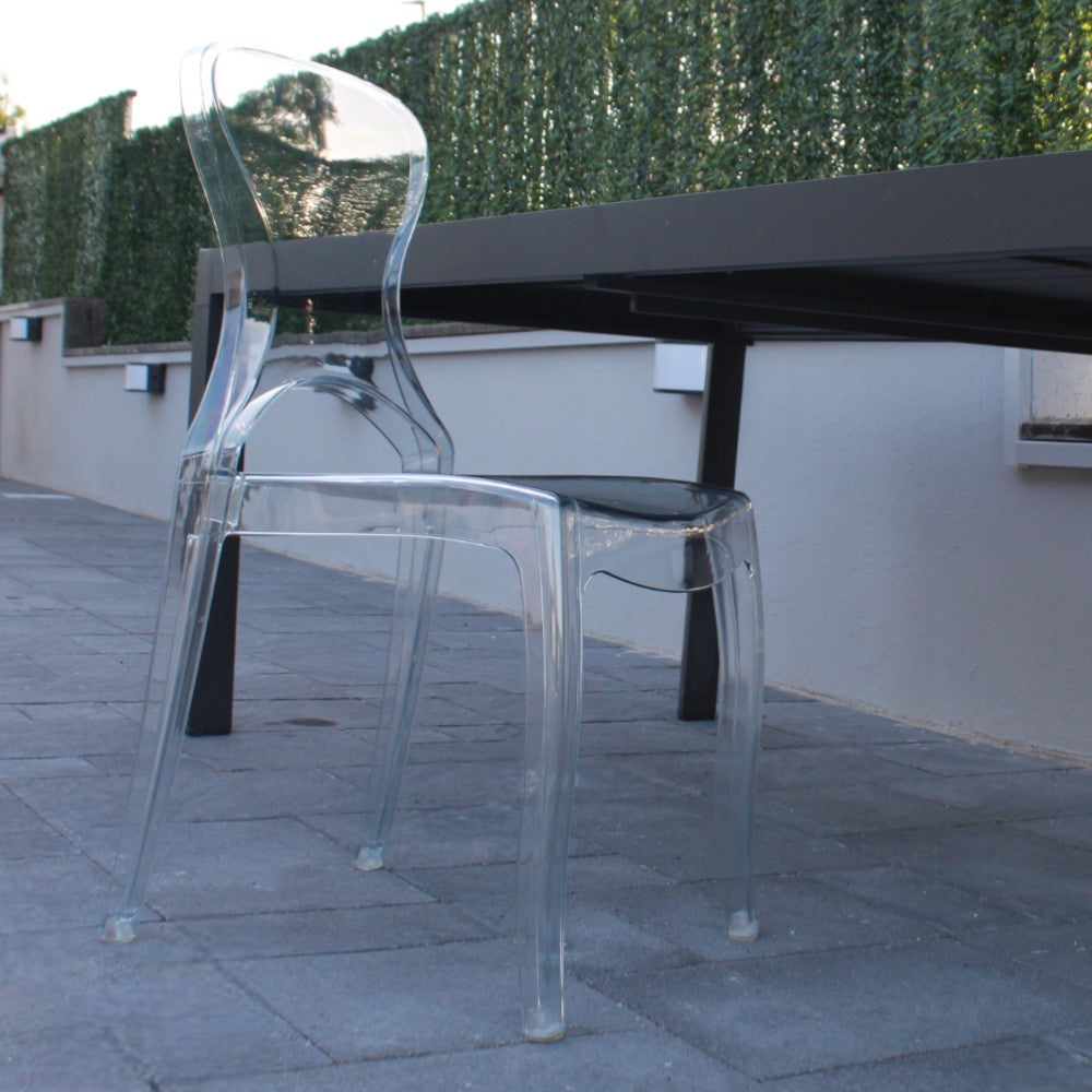 Sedia trasparente in policarbonato resistente e confortevole per uso interno ed ester...