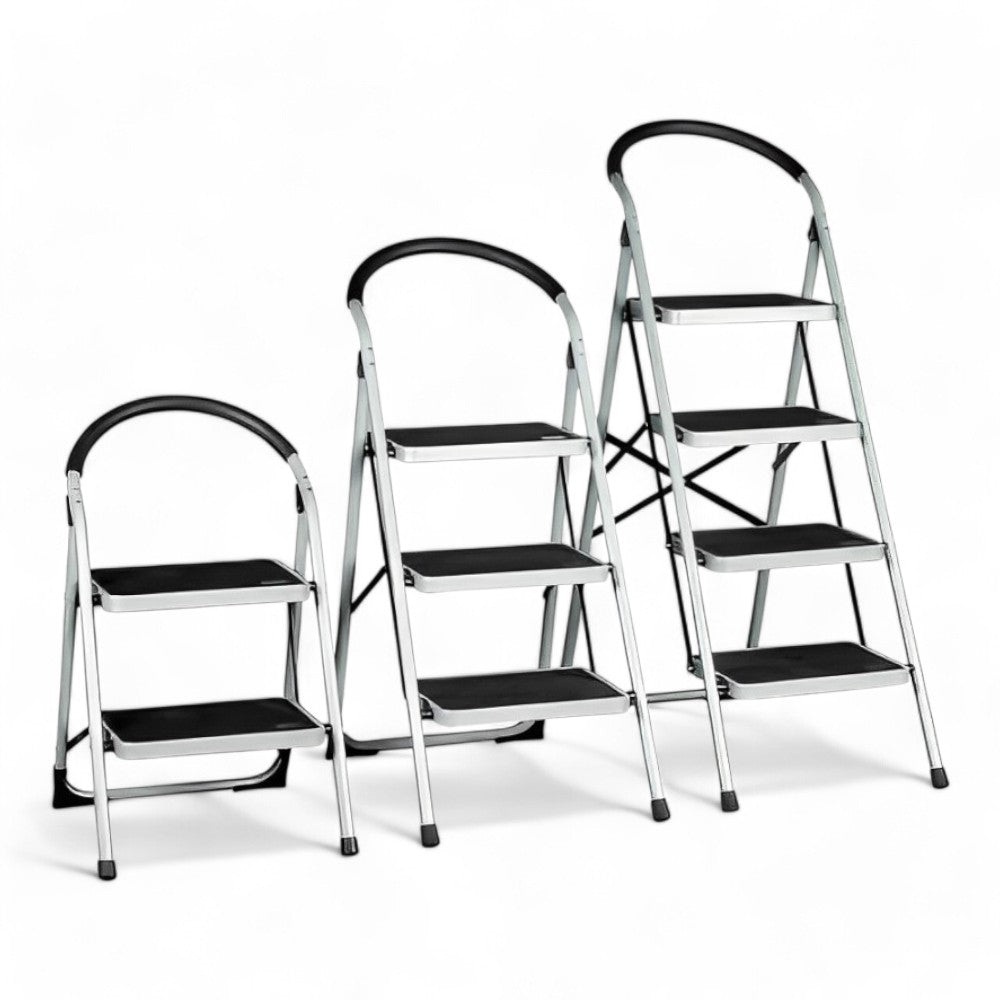 Sgabello in acciaio con gradini e portata 150 kg verniciato con brillanti