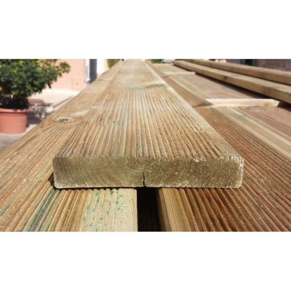 Listone zigrinato per pavimento da esterno in legno di pino impregnato 250x14,5x2,8 cm