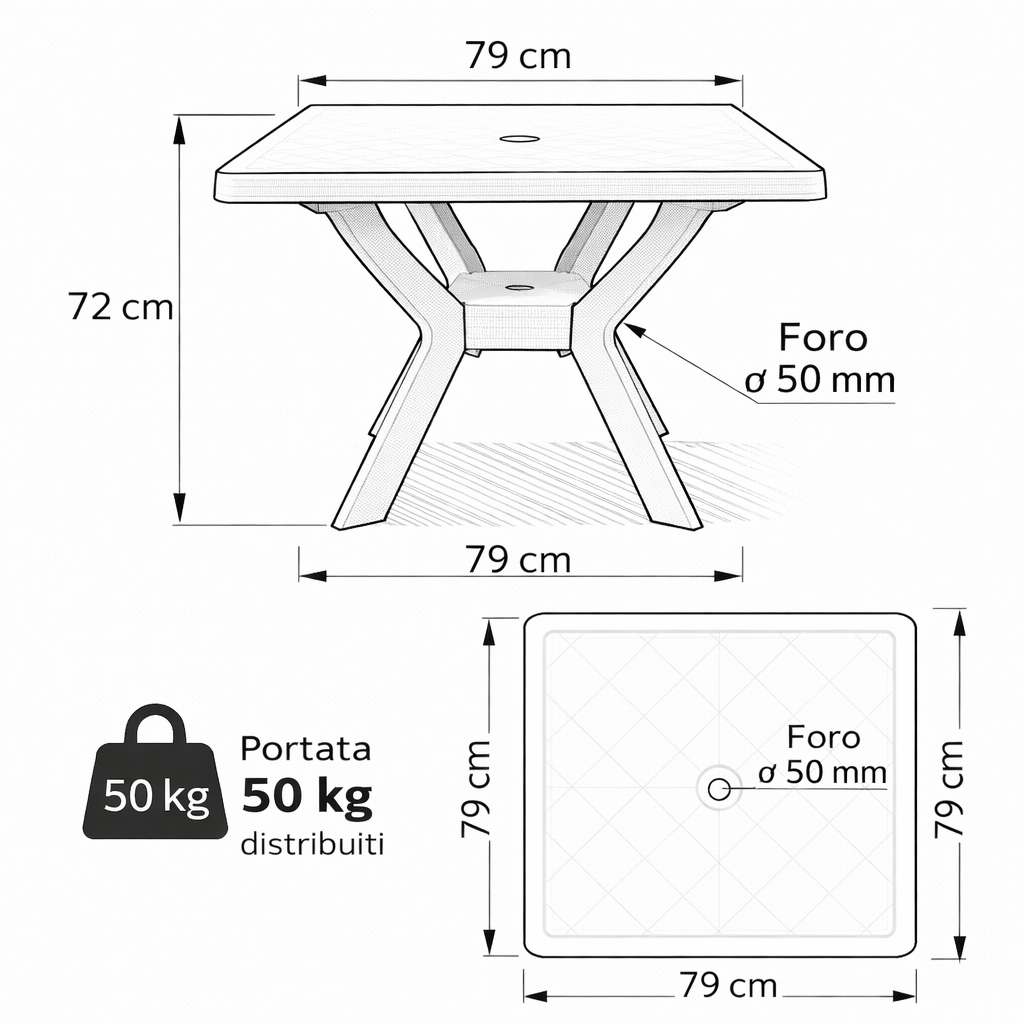 Tavolo in resina quadrato da esterno Fiocco Progarden