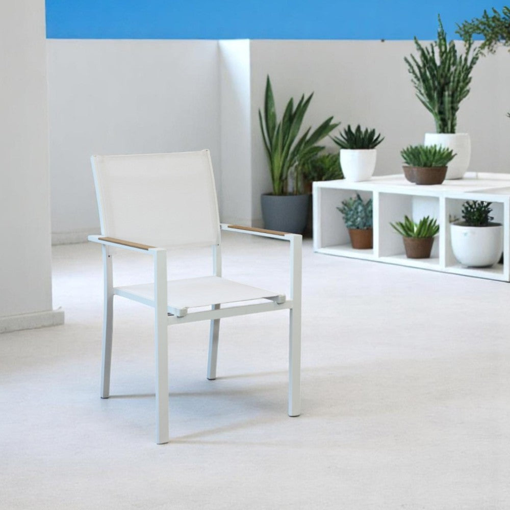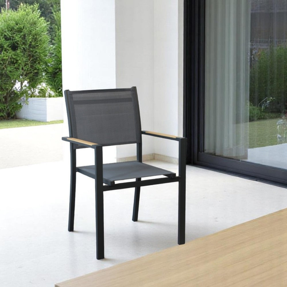 Sedia poltrona impilabile da esterno con struttura in alluminio e textilene Stamin