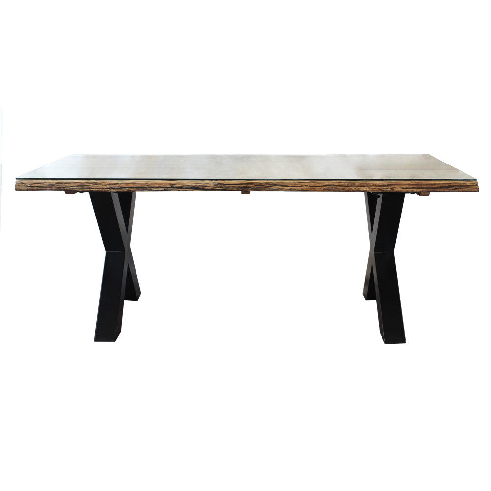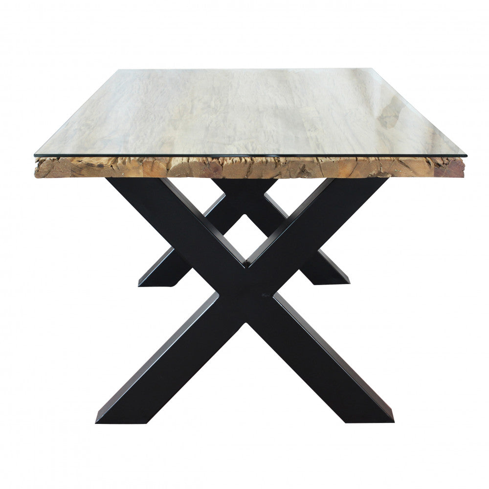 Tavolo rettangolare piano in legno con vetro con struttura in metallo 100x200xH77 cm ...
