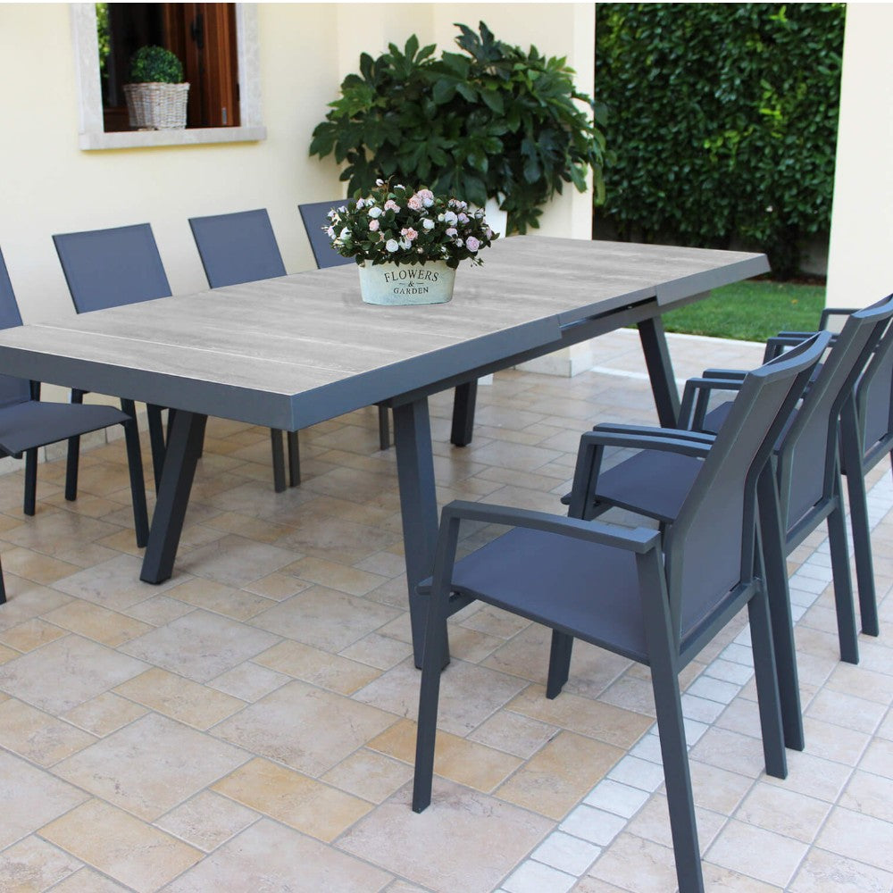 Tavolo allungabile da esterno giardino in alluminio con piano in gres effetto legno 1...