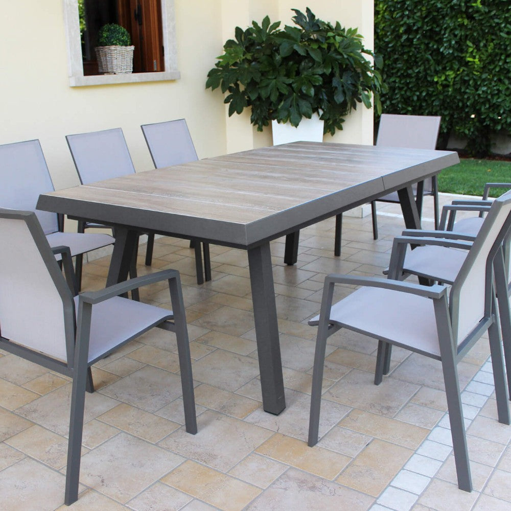 Tavolo allungabile da esterno in alluminio con piano effetto doghe MIRAG