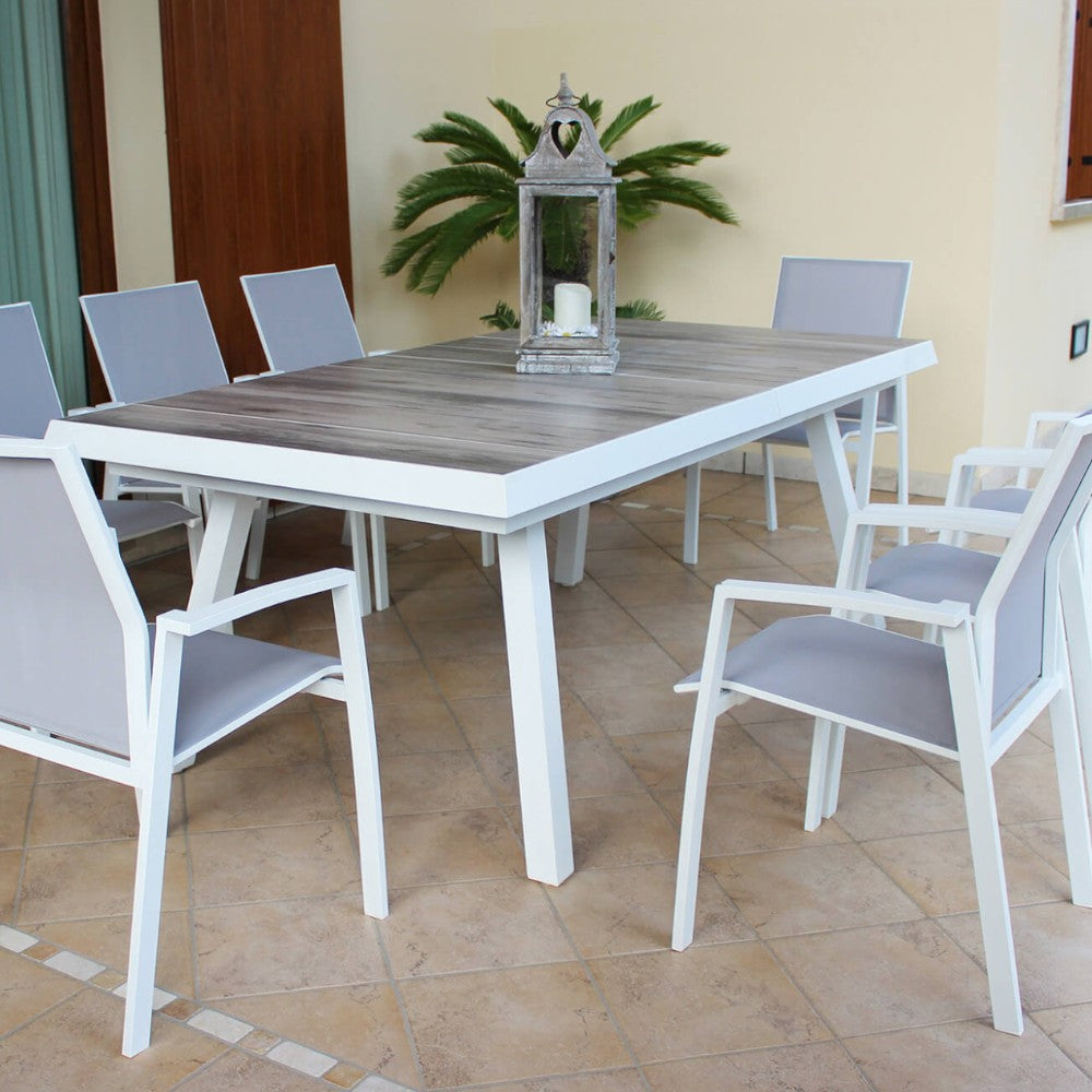Tavolo allungabile in alluminio bianco 165/215x85xH75,5 cm per esterno Sacramento