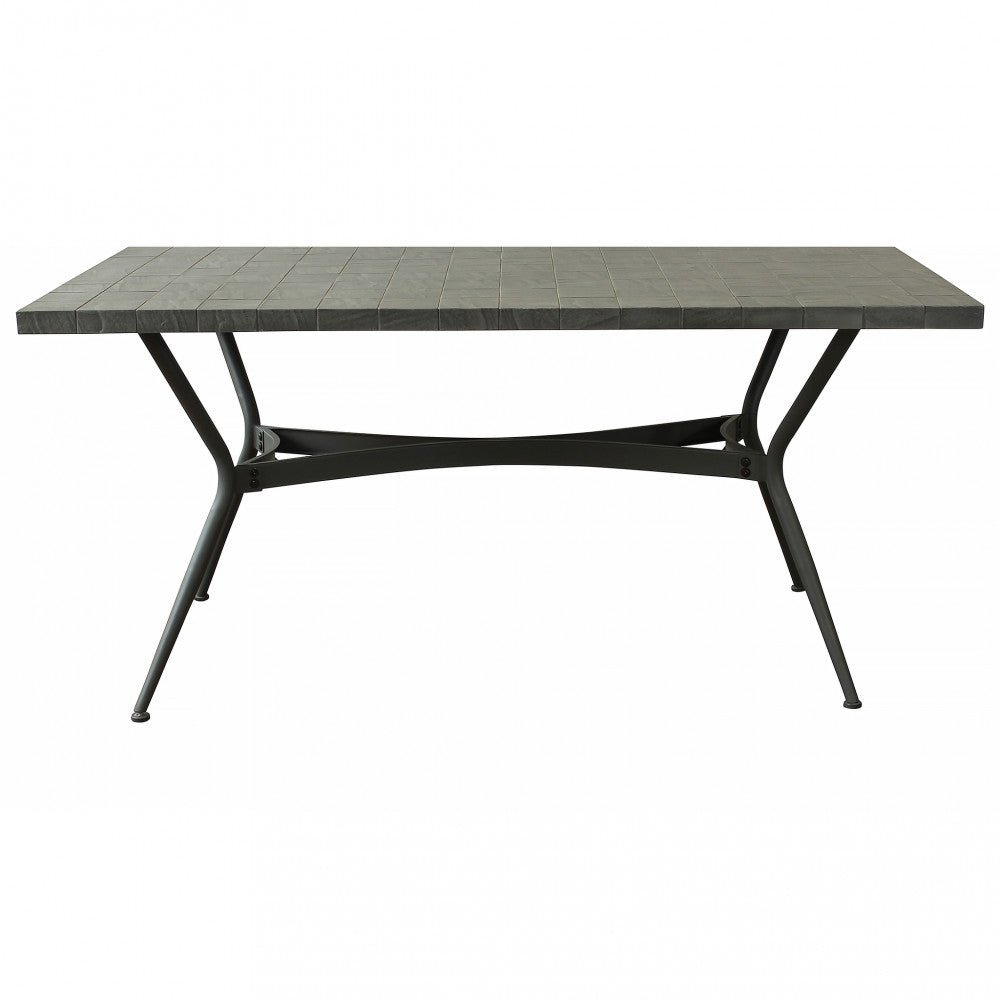 Tavolo con struttura in alluminio nera e piano laminato grigio chiaro 180x90xH76 cm C...