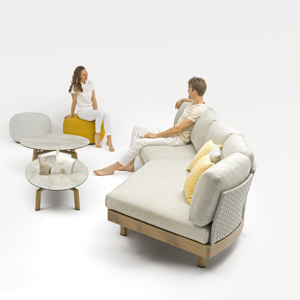 Tavolino ovale con piano in hpl e struttura in alluminio 137x71xH31 cm
