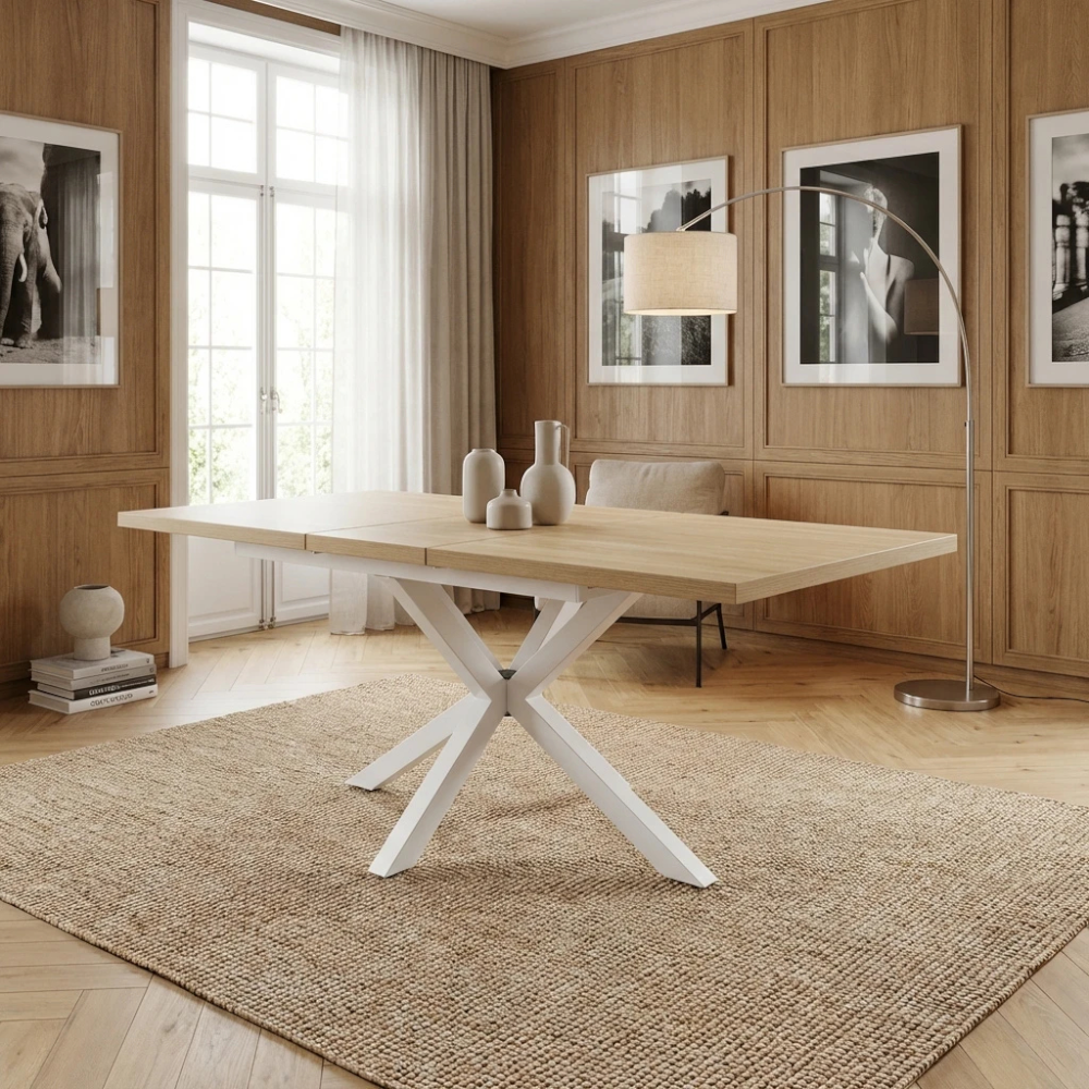 Tavolo allungabile struttura in metallo bianco e piano in mdf marrone 90x160/200xH75 ...