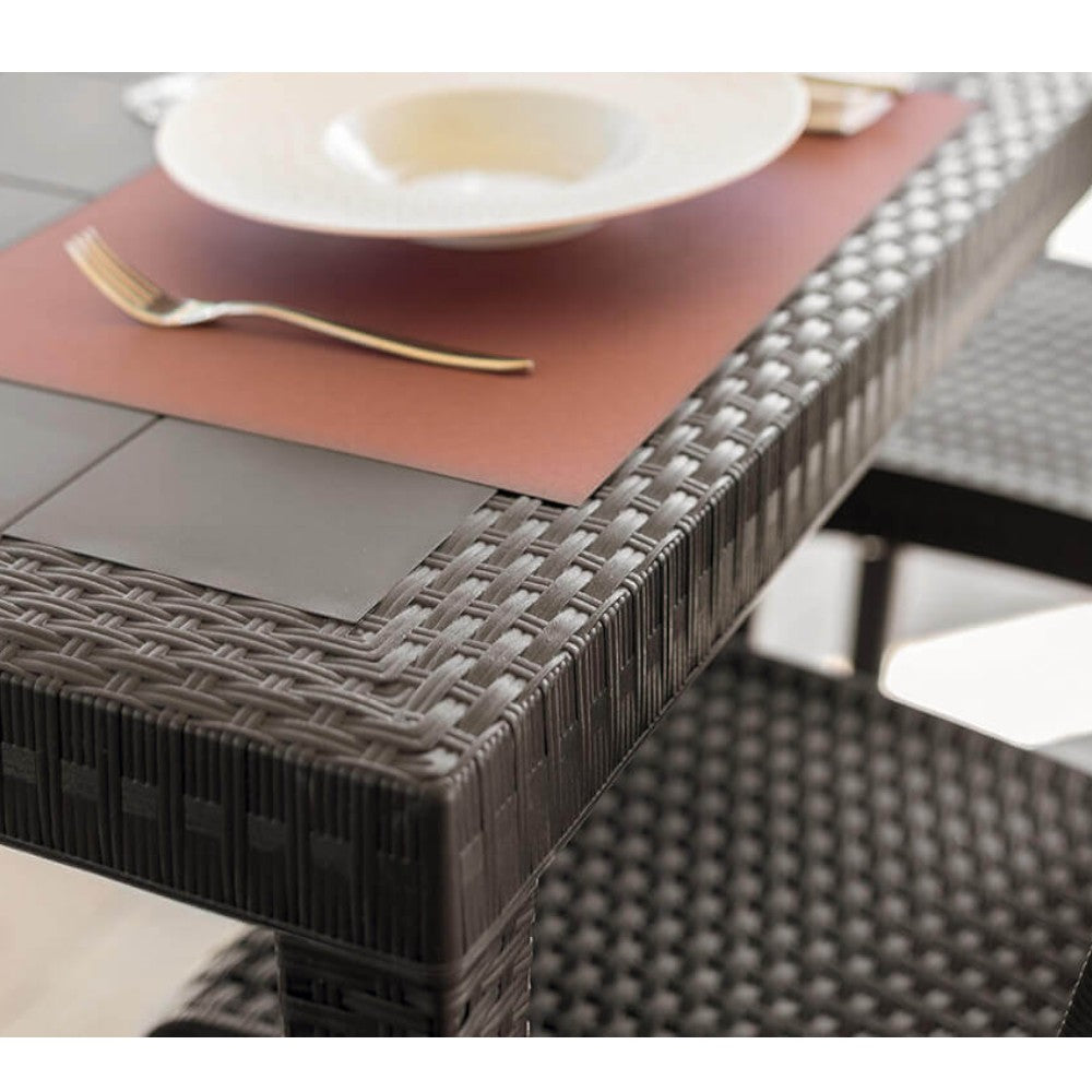 Tavolo rettangolare 150x90 cm in wicker stampato con gambe regolabili e foro centrale...