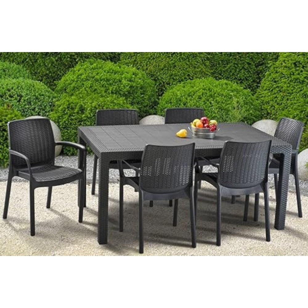 Tavolo rettangolare da esterno 138x78xH72 in resina effetto rattan antracite