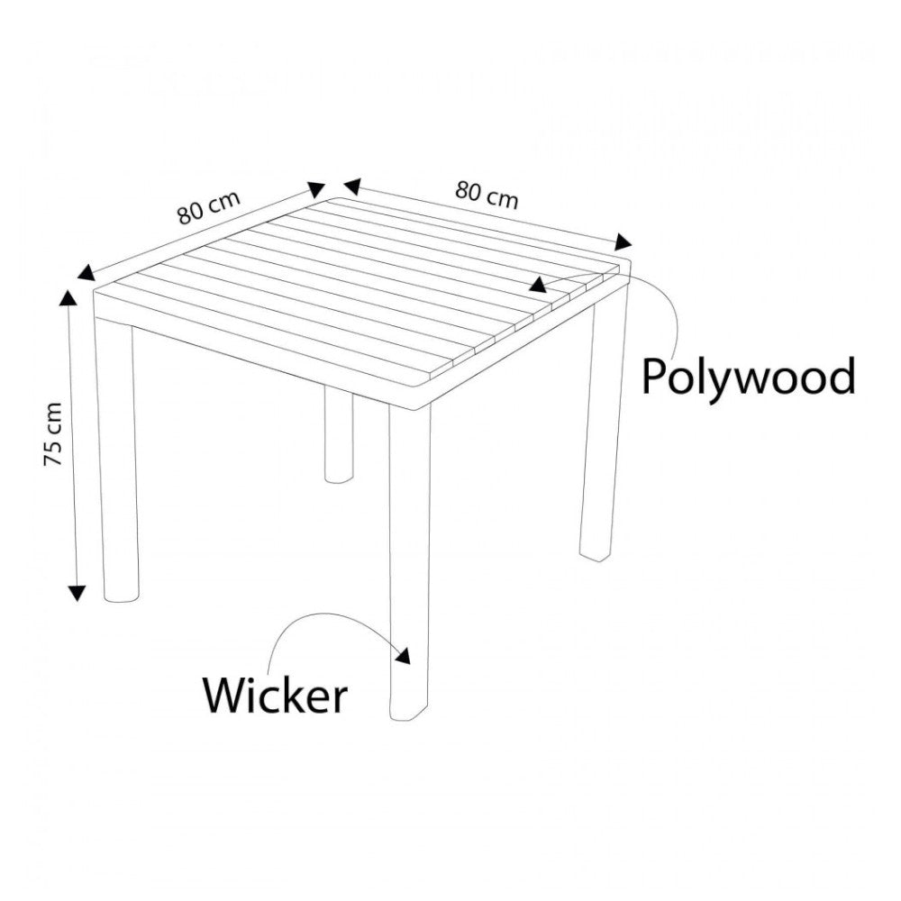 Tavolo quadrato 80x80 cm da esterno giardino in wicker stampato con gambe regolabili ...