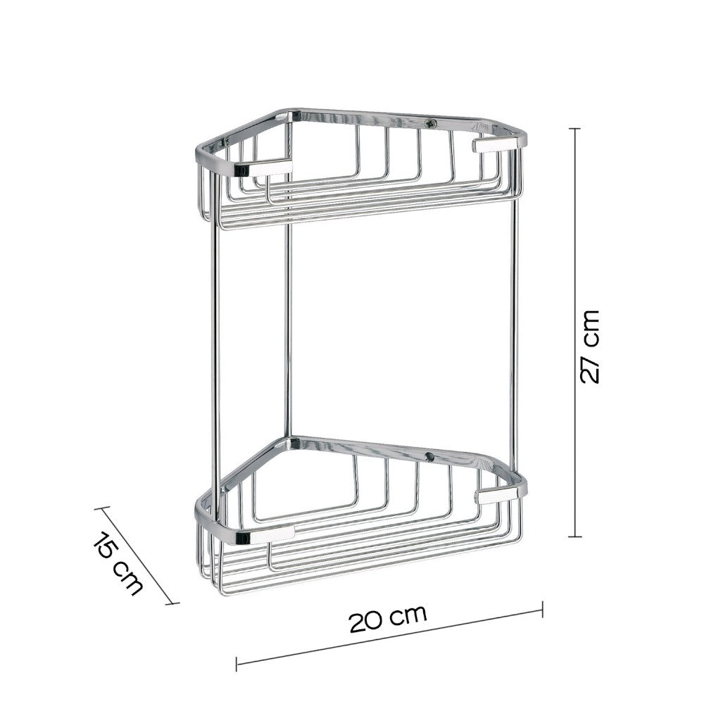 Angoliera doccia 2 ripiani 20x15xH27 cm cromata in acciaio per bagno