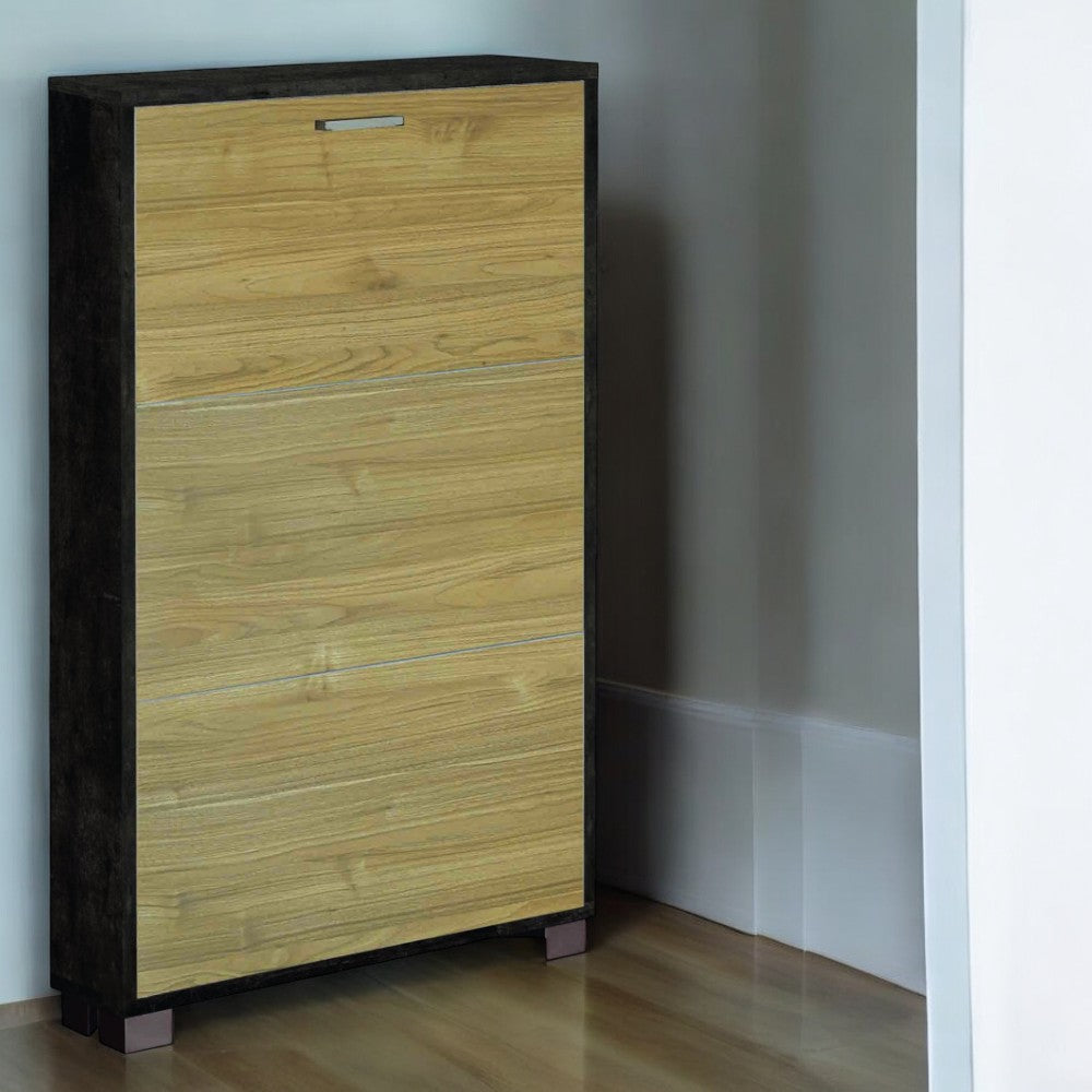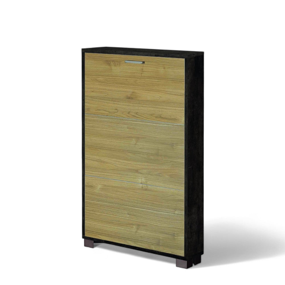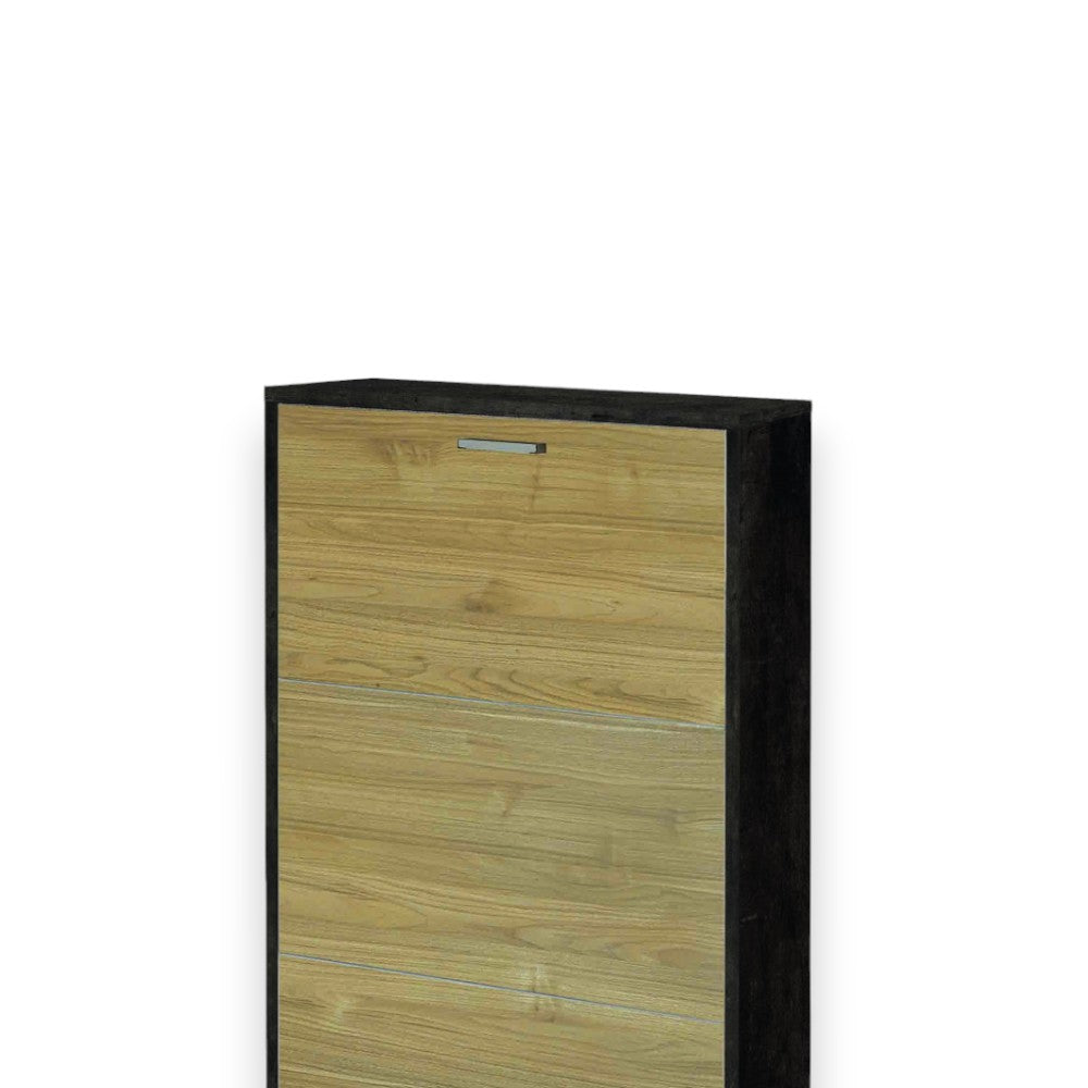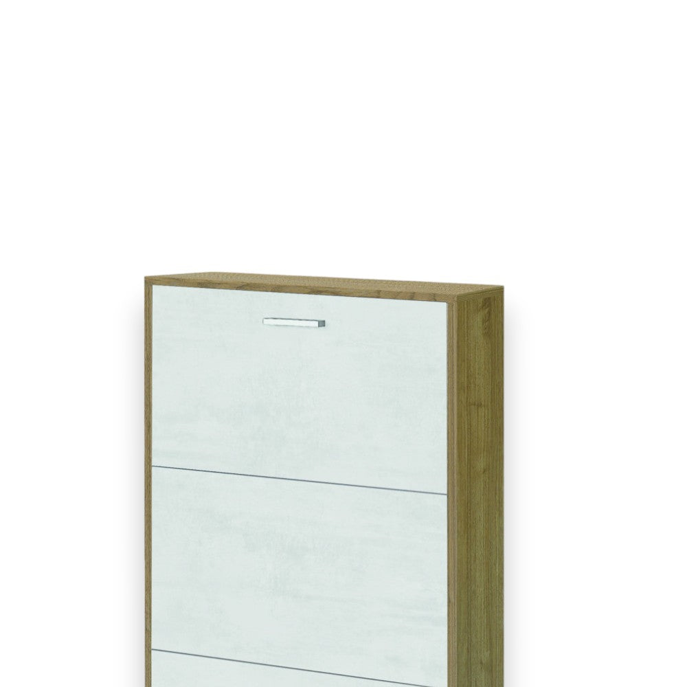 Scarpiera tre ante salvaspazio in MDF finitura titanio e quercia bianco dimensioni co...