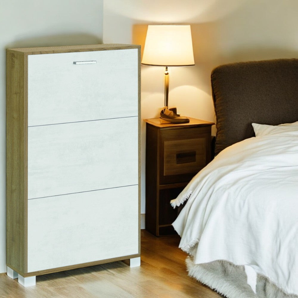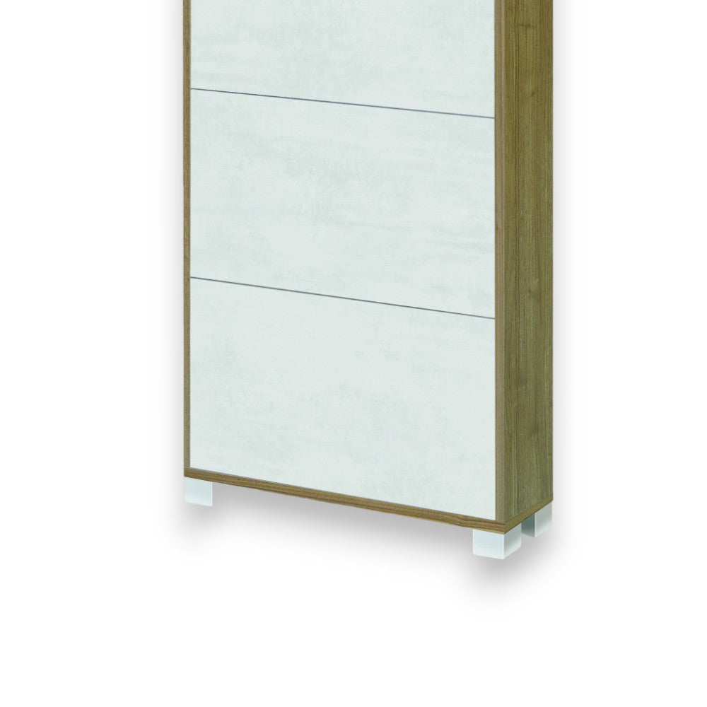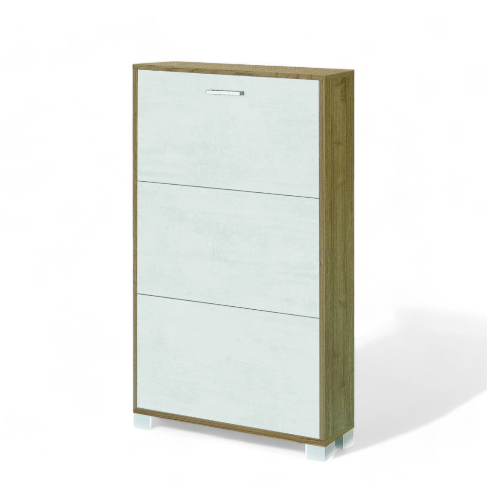 Scarpiera salvaspazio tre ante struttura MDF bianco fiammato e noce dimensioni compat...