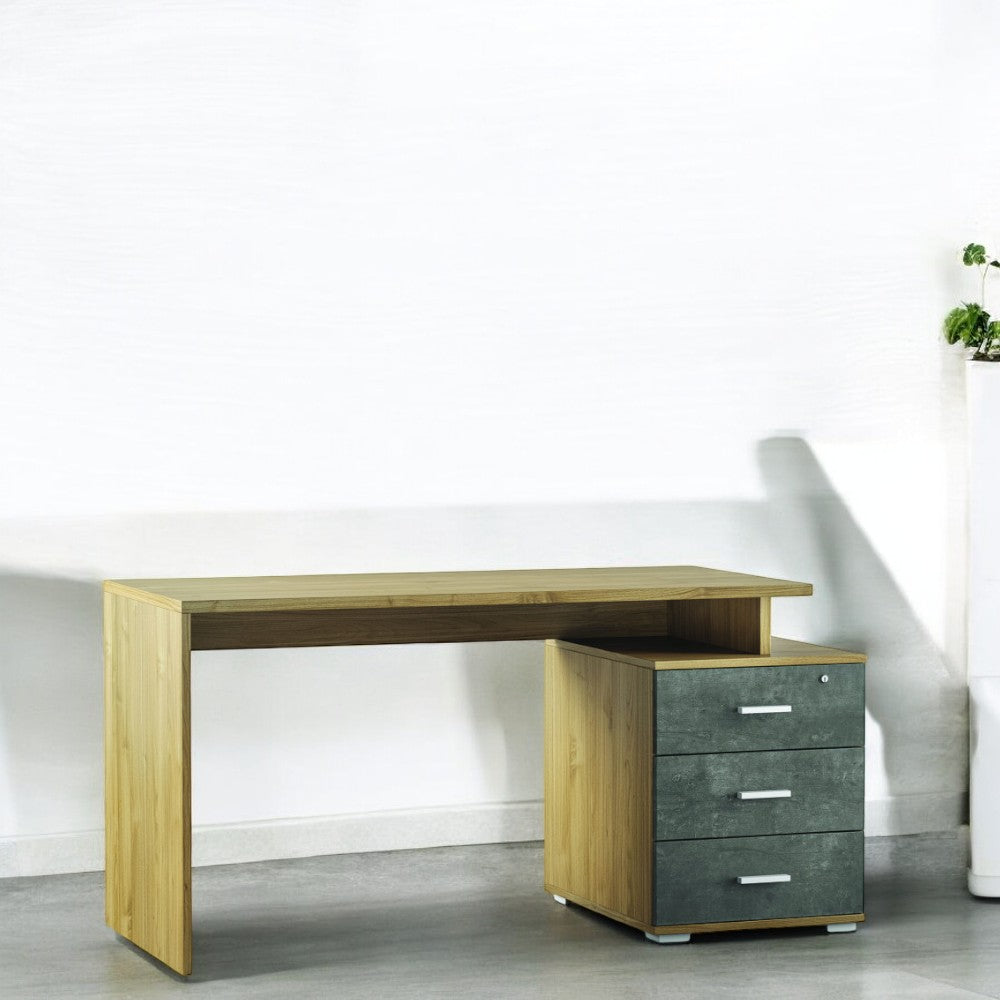 Scrivania moderna con cassettiera destra in MDF colore rovere chiaro 154x55x76 cm ide...