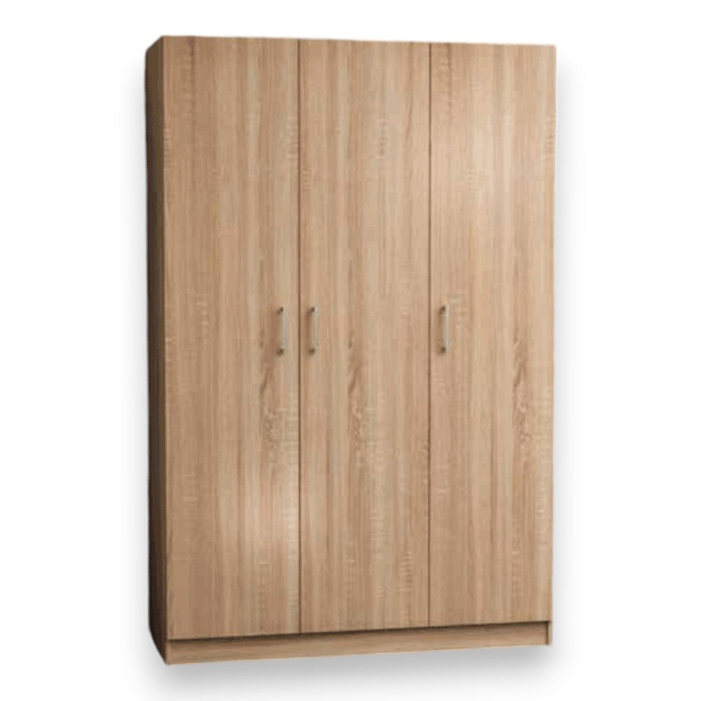 Armadio guardaroba tre ante legno quercia chiaro con ripiano interno e tubo appendiab...