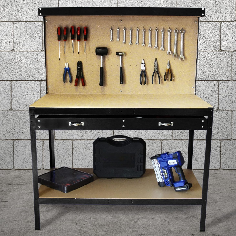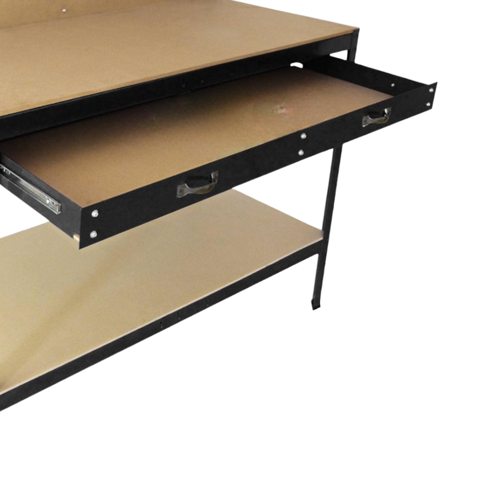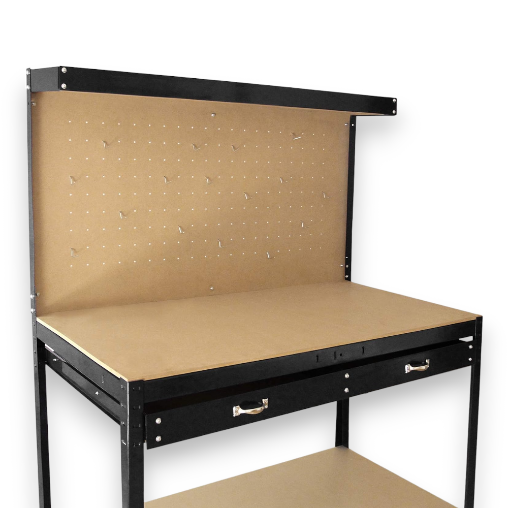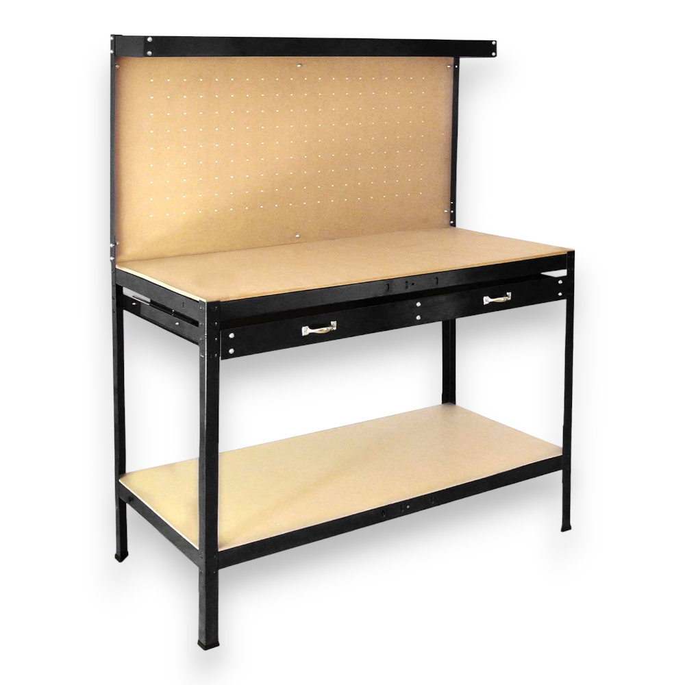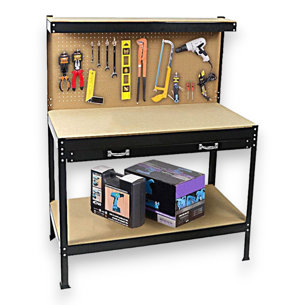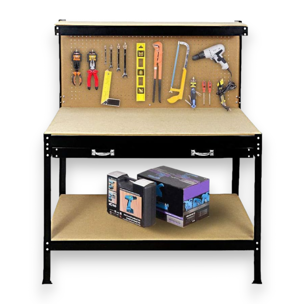 Banco da lavoro 120x60 cm con struttura in metallo e ripiani in MDF