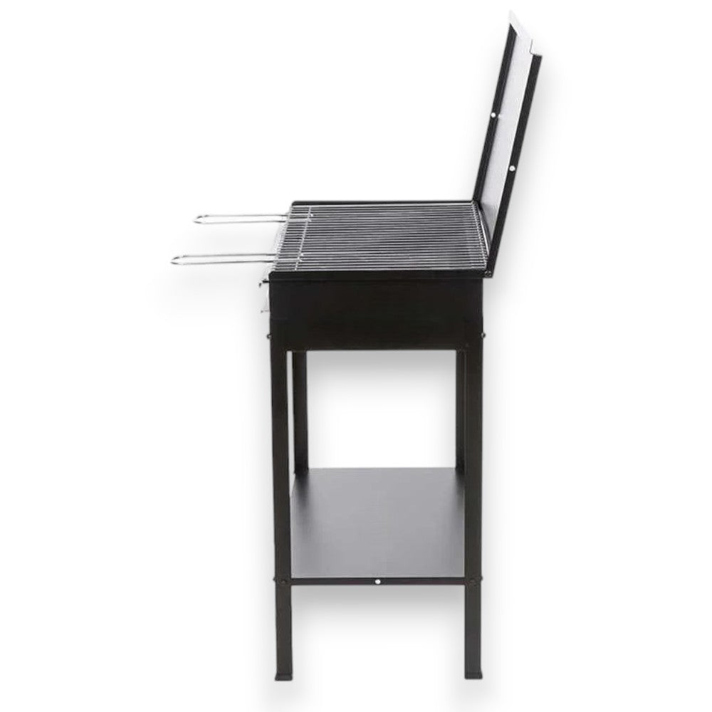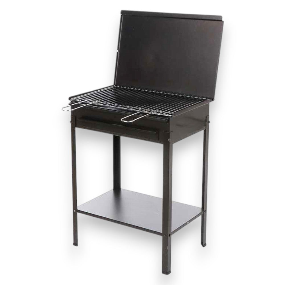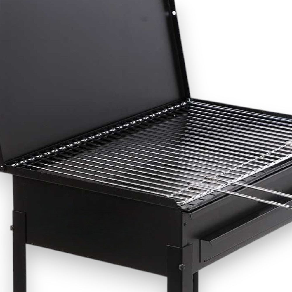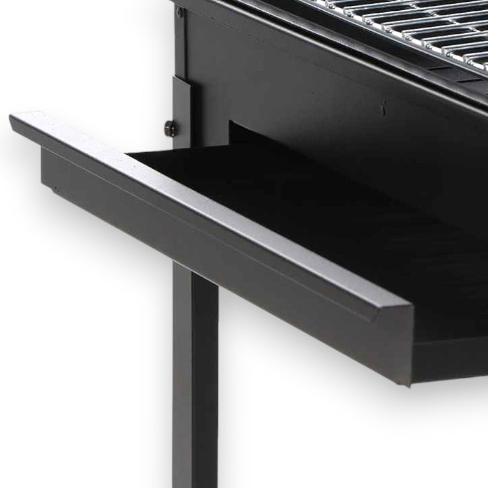 Barbecue a carbone in acciaio nero con griglia cromata e cassetto ceneri estraibile