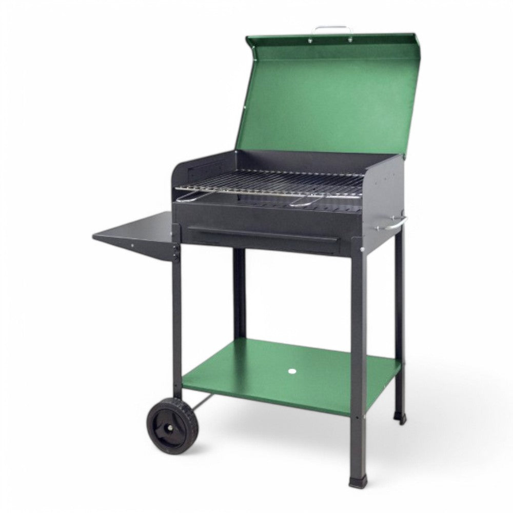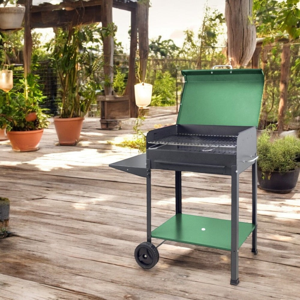 Barbecue a carbone in acciaio con ruote e cassetto ceneri estraibile
