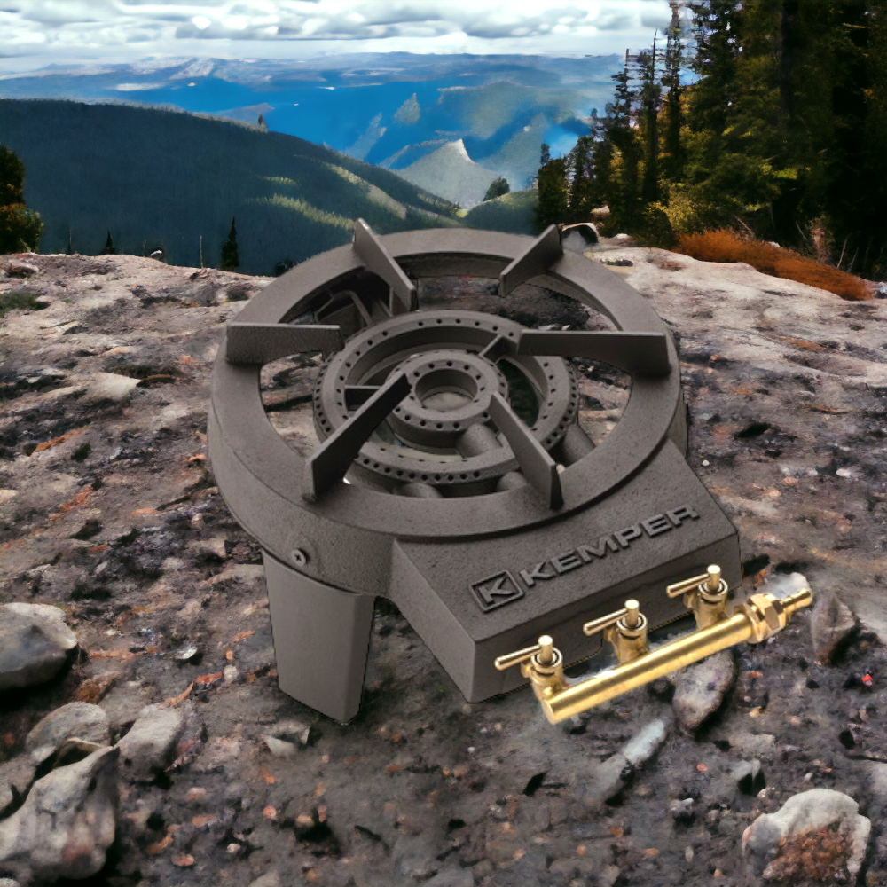Fornellone a gas in ghisa con doppio bruciatore 8,6 kw e supporto smontabile Kemper