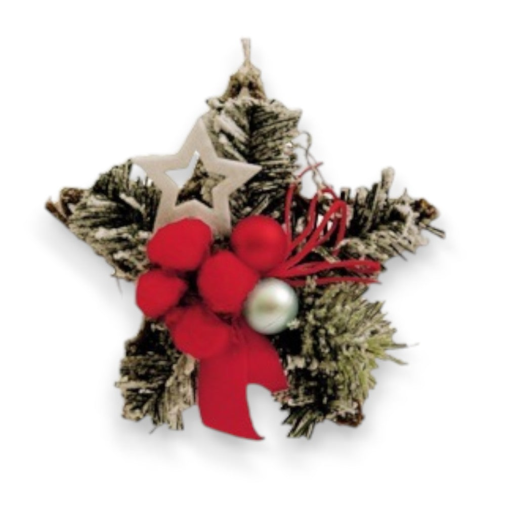 Fuoriporta natalizio con decori rossi assortiti diametro 20 cm per addobbi e decorazi...