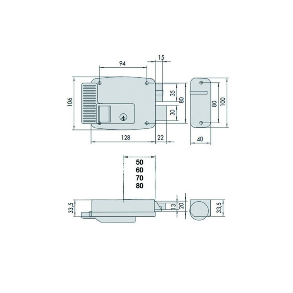 Elettroserratura per porte legno con pulsante interno a 2 mandate acciaio 12v scrocco...