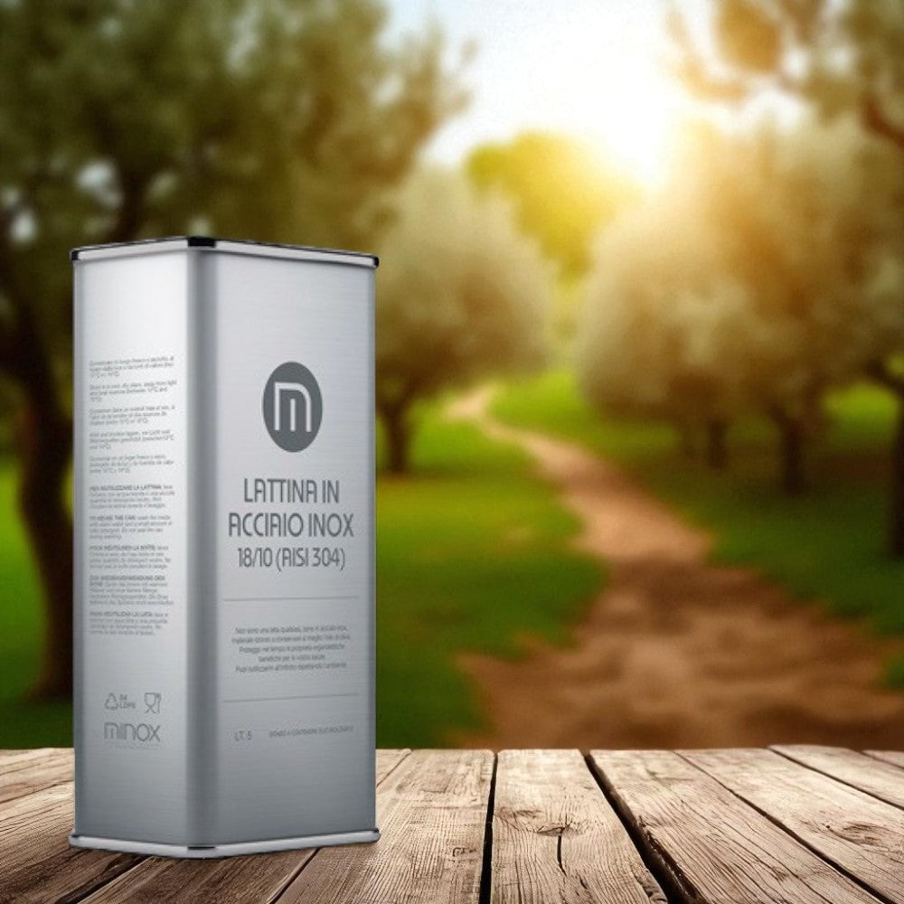 Lattina in acciaio inox 18/10 per olio 5 lt con maniglia e tappo a vite incluso