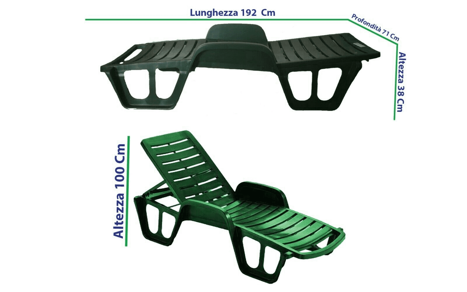 Lettino da giardino in resina con ruote pieghevole e reclinabile Smeraldo Bianco