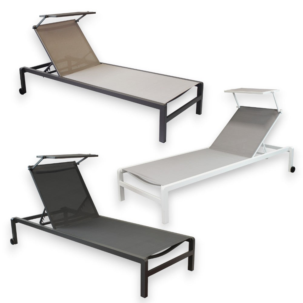 Lettino da giardino in alluminio e textilene con schienale regolabile tettuccio paras...