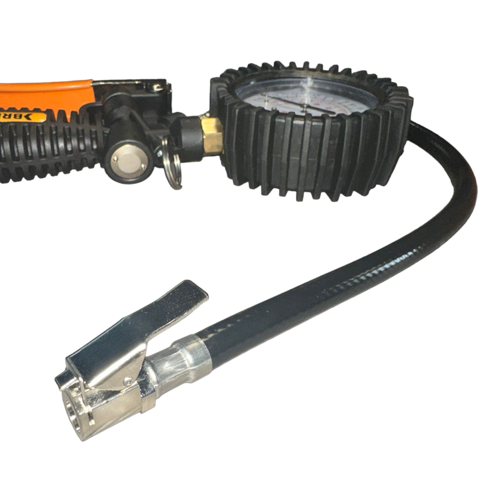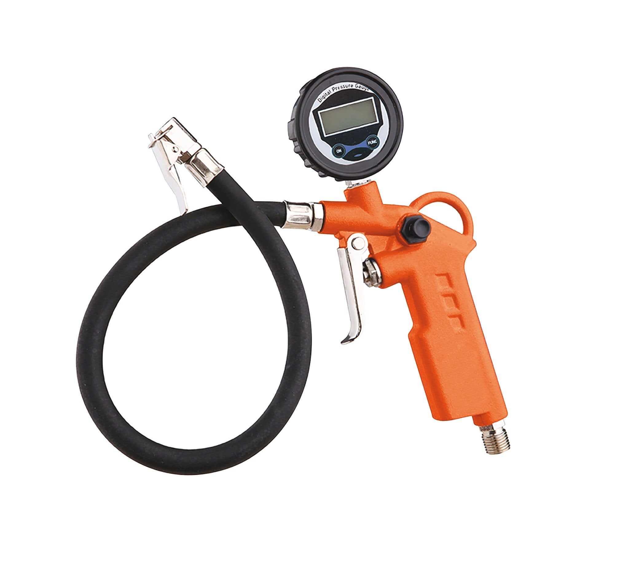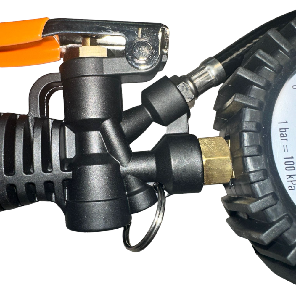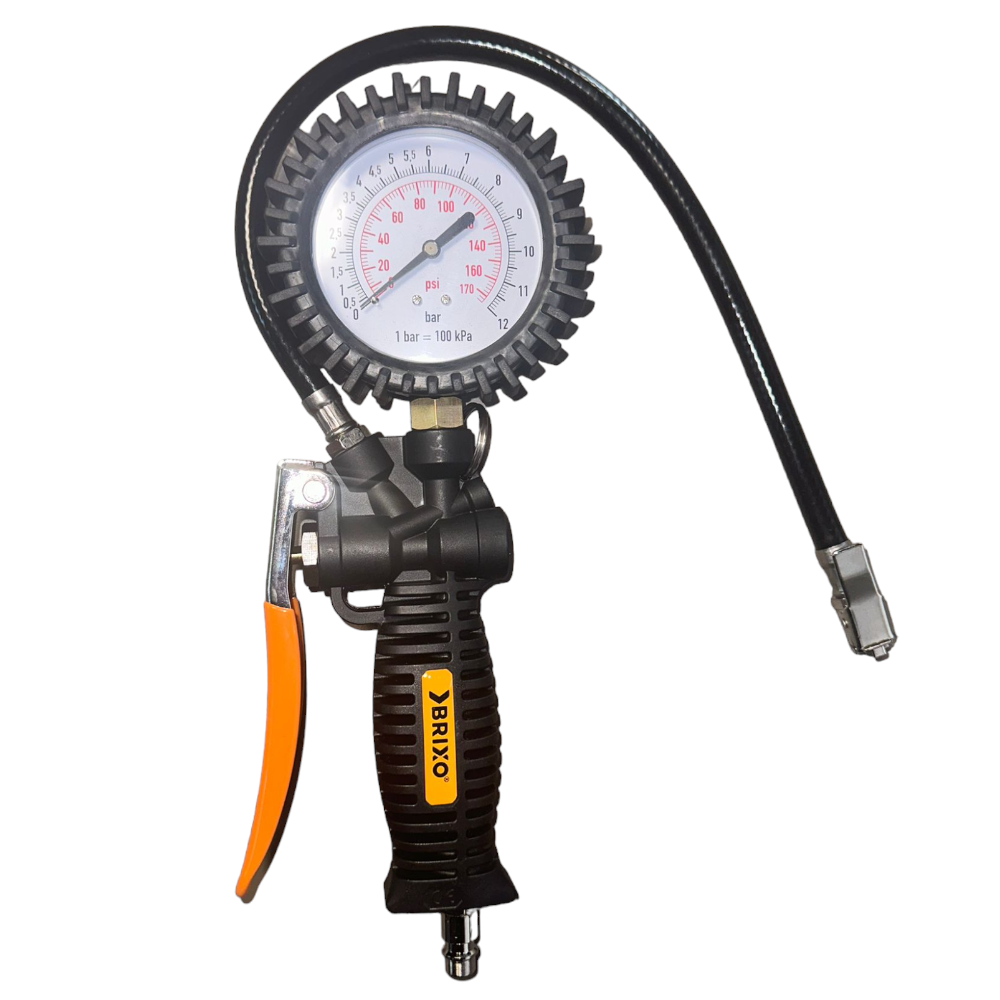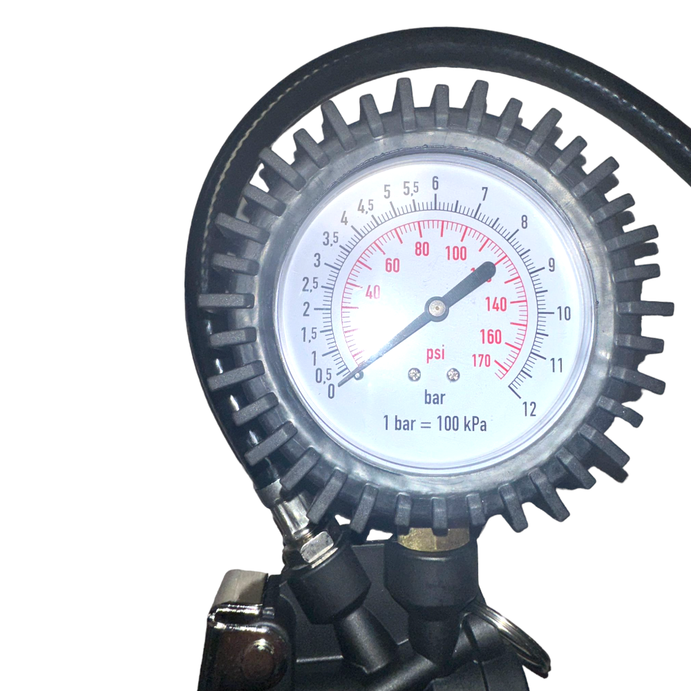 Pistola gonfiaggio aria con tubo PVC 400 mm corpo alluminio manometro 60 mm scala 0-1...