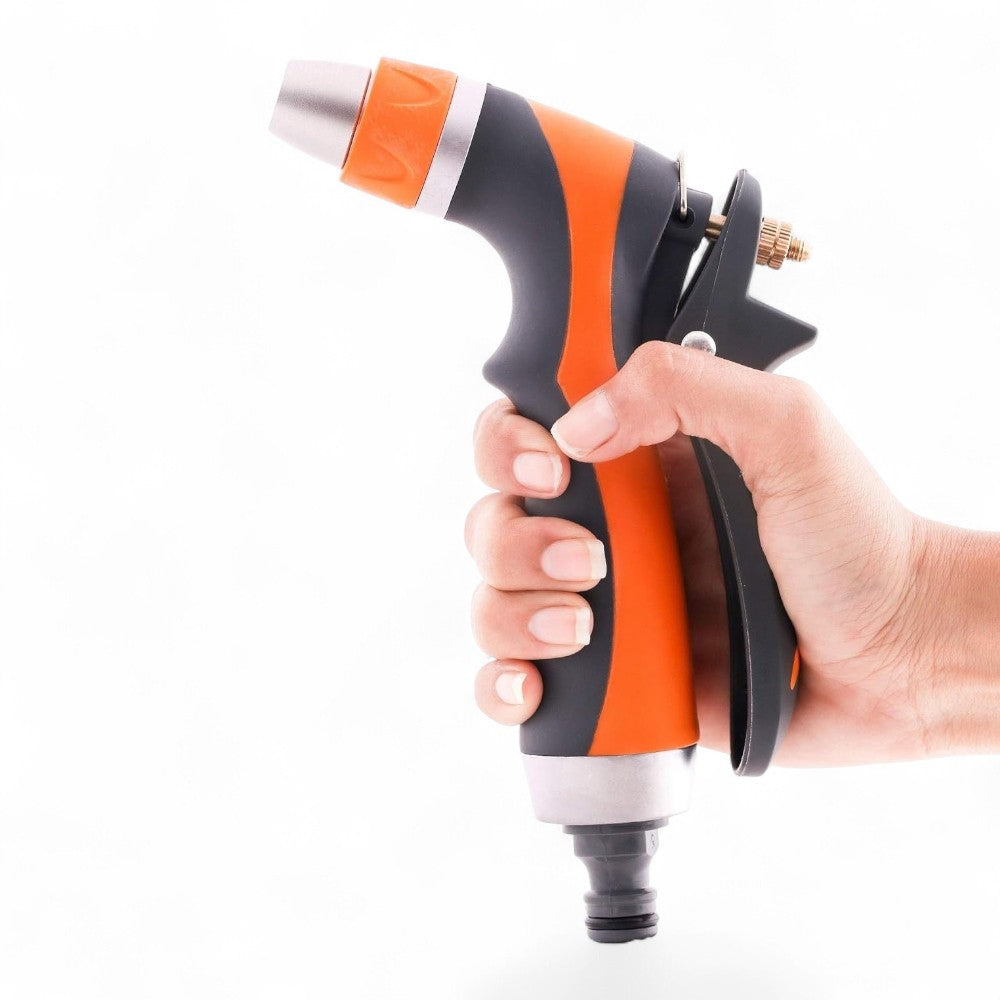 Pistola irrigazione in metallo ricoperta di gomma antiscivolo con leva regolazione getto