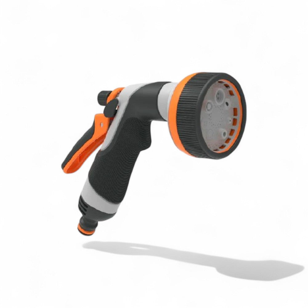 Pistola multi getto con 8 getti selezionabili e leva per regolazione e blocco acqua