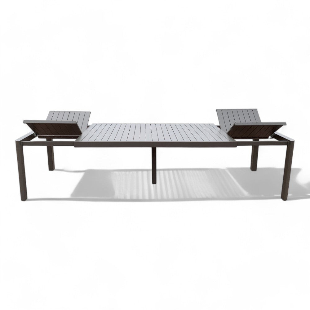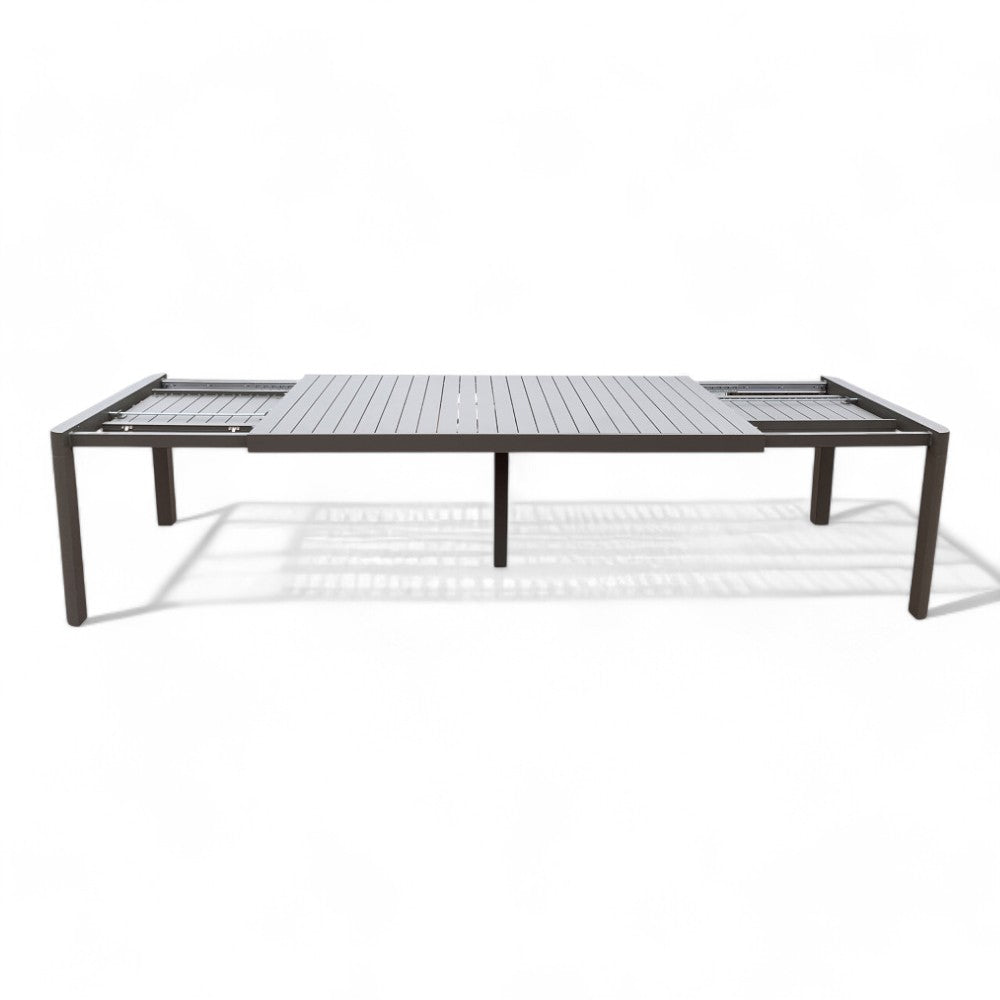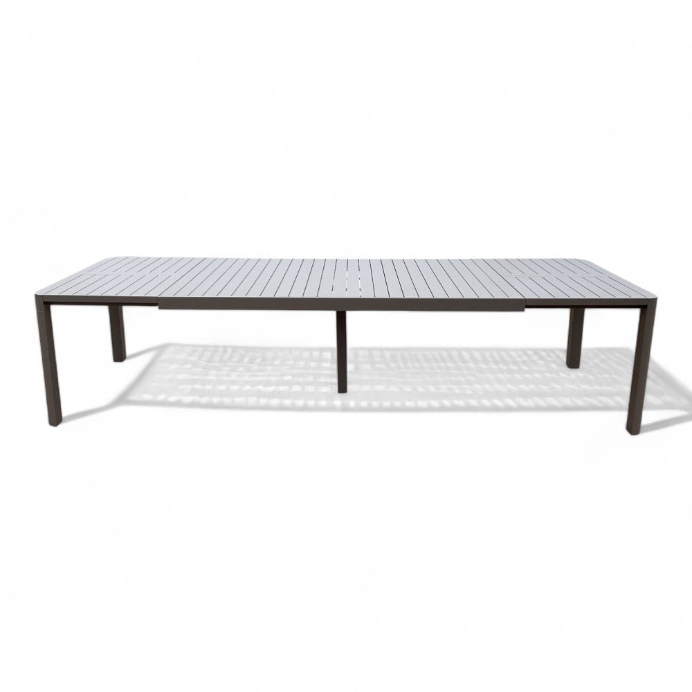 Tavolo in alluminio taupe da esterno allungabile fino a 3,20 mt con piano a doghe Malaga